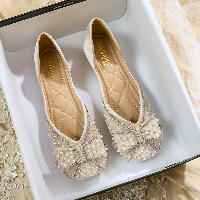 스퀘어 헤드 플랫 힐 슈즈 여성용 2022 한국어 버전의 새로운 활 얕은 부드러운 바닥 신발 요정 부드러운 여성 신발 부동 신발스토어 가기