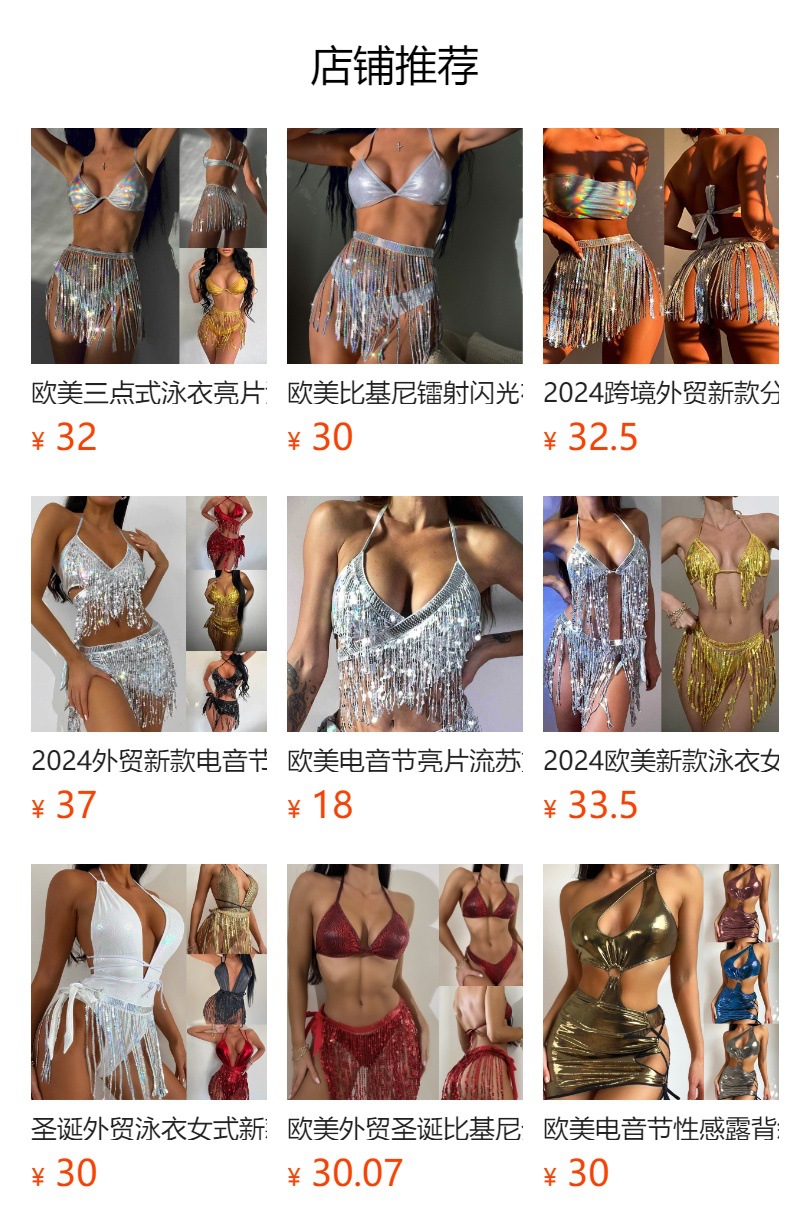 크로스보더 신상 여성 전자음악 축제 스플릿 수영복 3피스 세트 반짝이 원단 섹시한 프린지 비키니 여성용스토어 가기