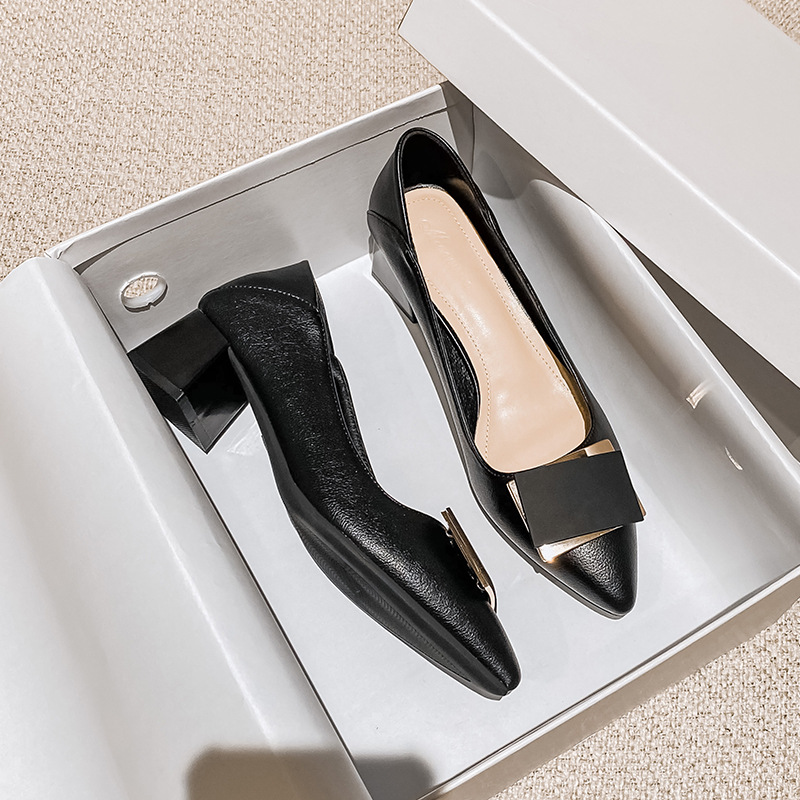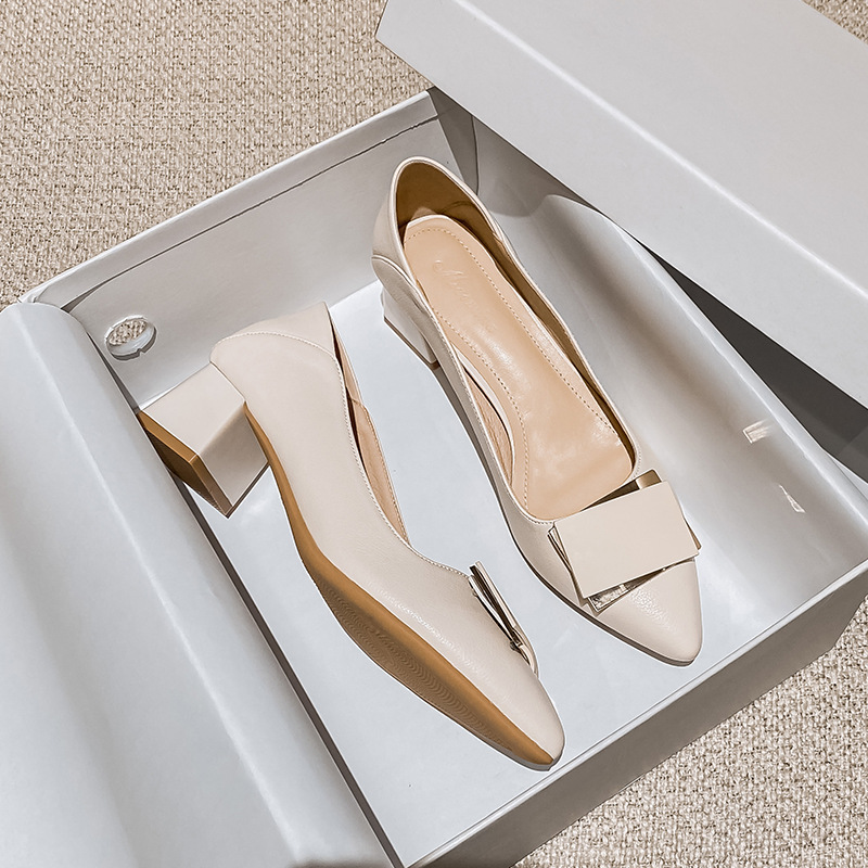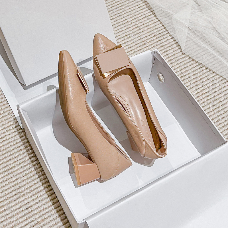 하이힐 여성의 2024 새로운 여성 신발 두꺼운 뒤꿈치를 가리키는 우아한 올 매치 이브닝 스타일 하이힐 여성용 대형 싱글 레이어 신발스토어 가기