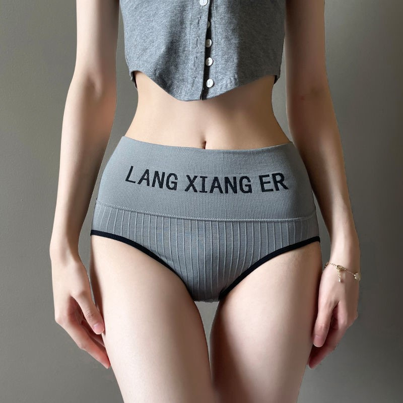 Lanxianger 순면 속옷 하이 웨이스트 편지 추적 섹시한 복부 통기성 항균 가랑이 섹시한 소녀의 팬티스토어 가기