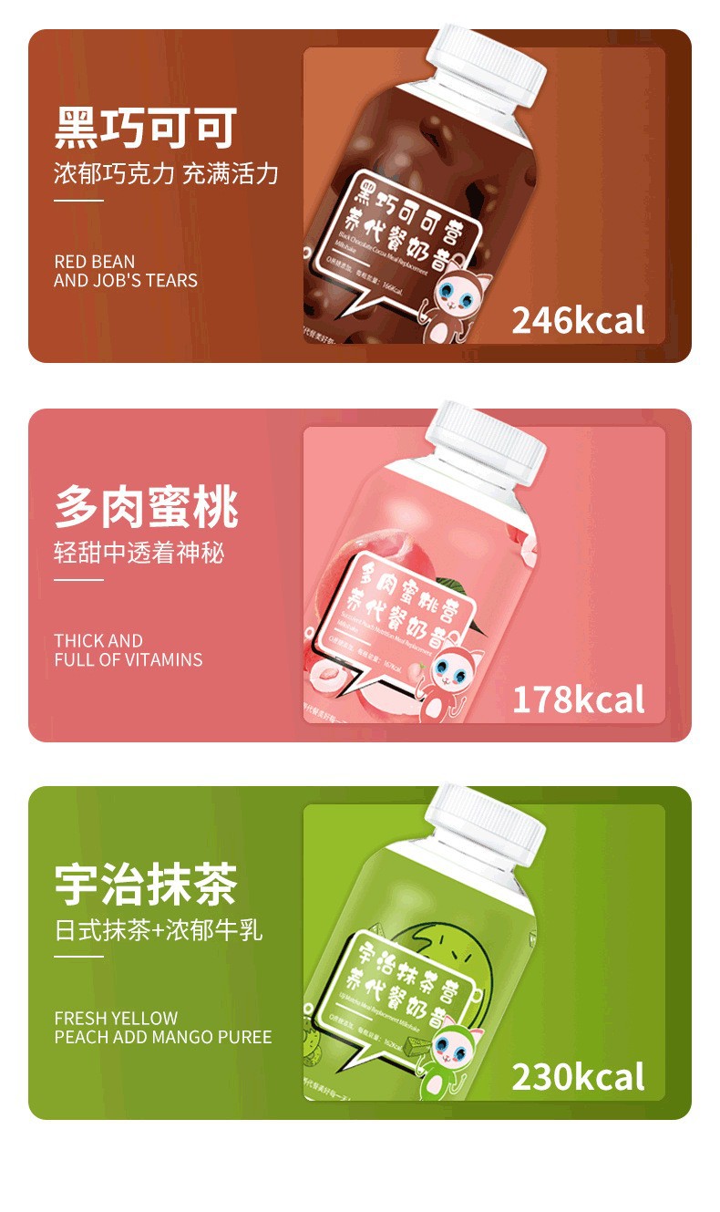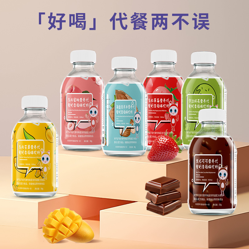 식사 교체 밀크 쉐이크 패스트 푸드 아침 식사 교체 파우더 작은 지방 병 딸기 즙이 많은 과일 밀크 쉐이크 대량 식사 대체 곡물 분말스토어 가기
