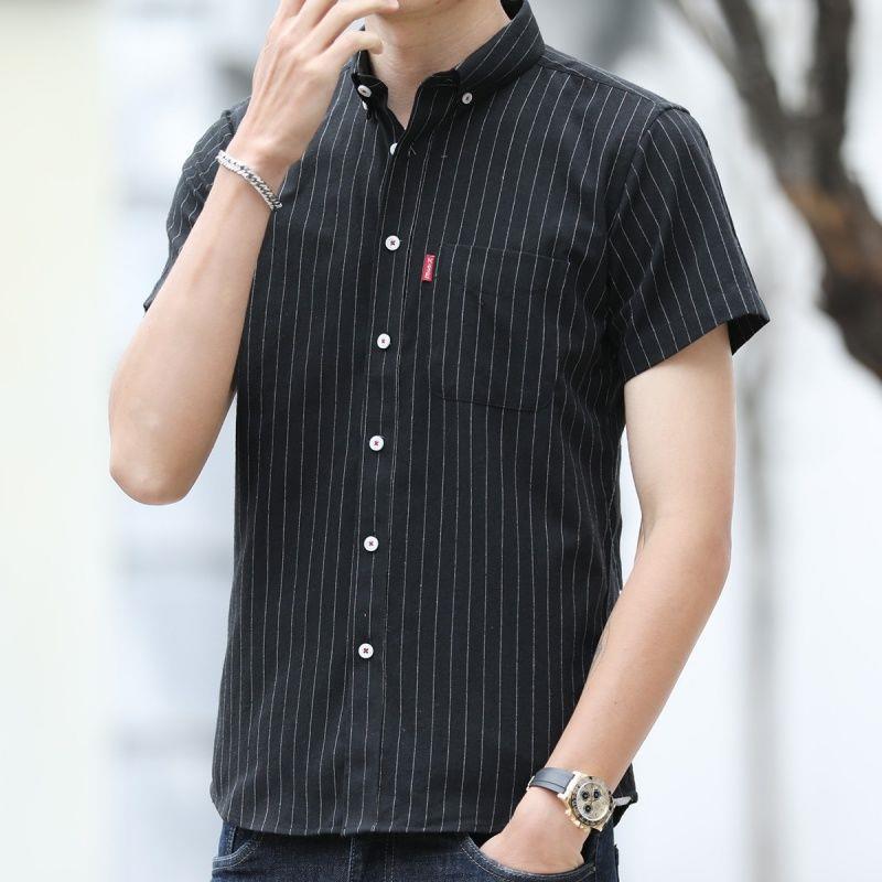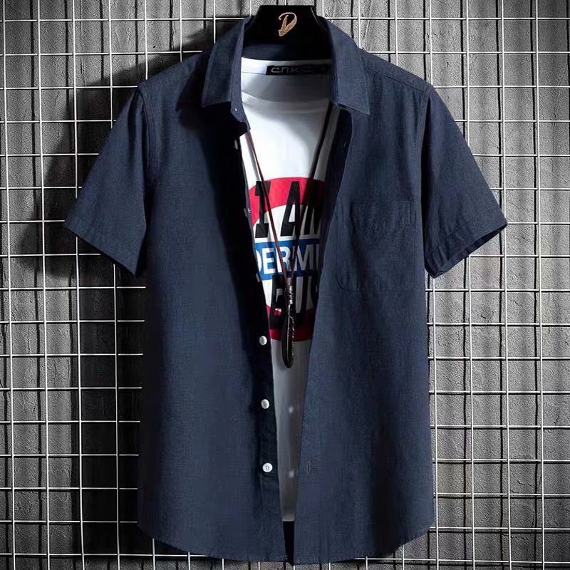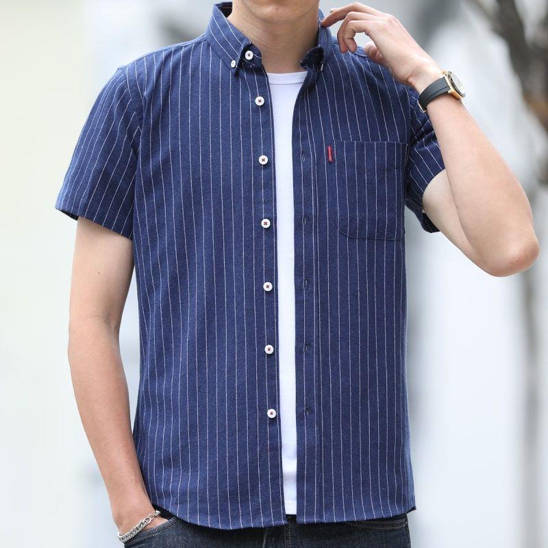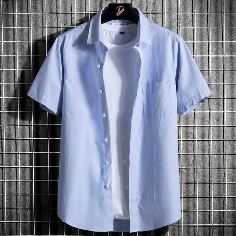 短袖衬衫男夏季新款韩版休闲上衣男士七分袖牛津纺白色衬衣寸潮스토어 가기
