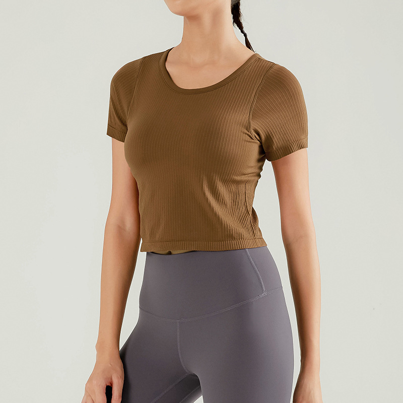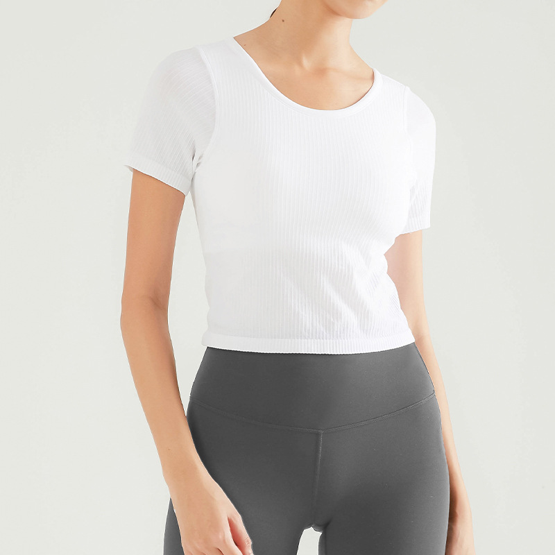 반팔 EBB 뉴 요가 의류 여성용 스포츠 고탄성 허리 피트니스 여름 경량 티셔츠 (가슴 패드 포함)스토어 가기