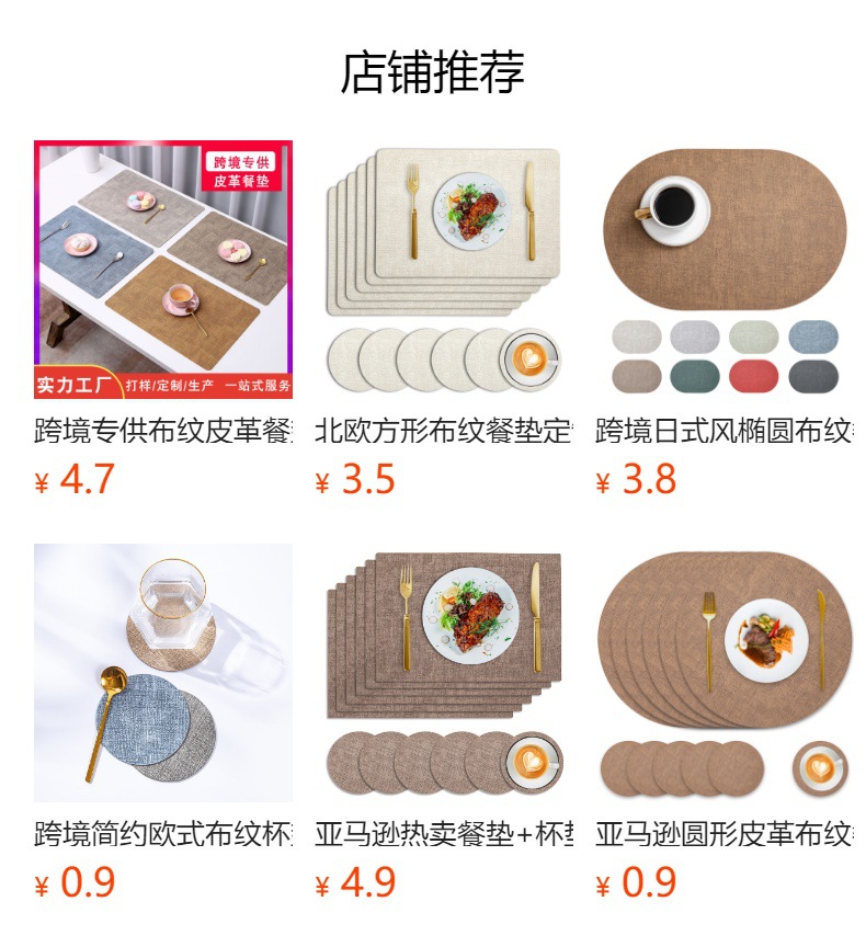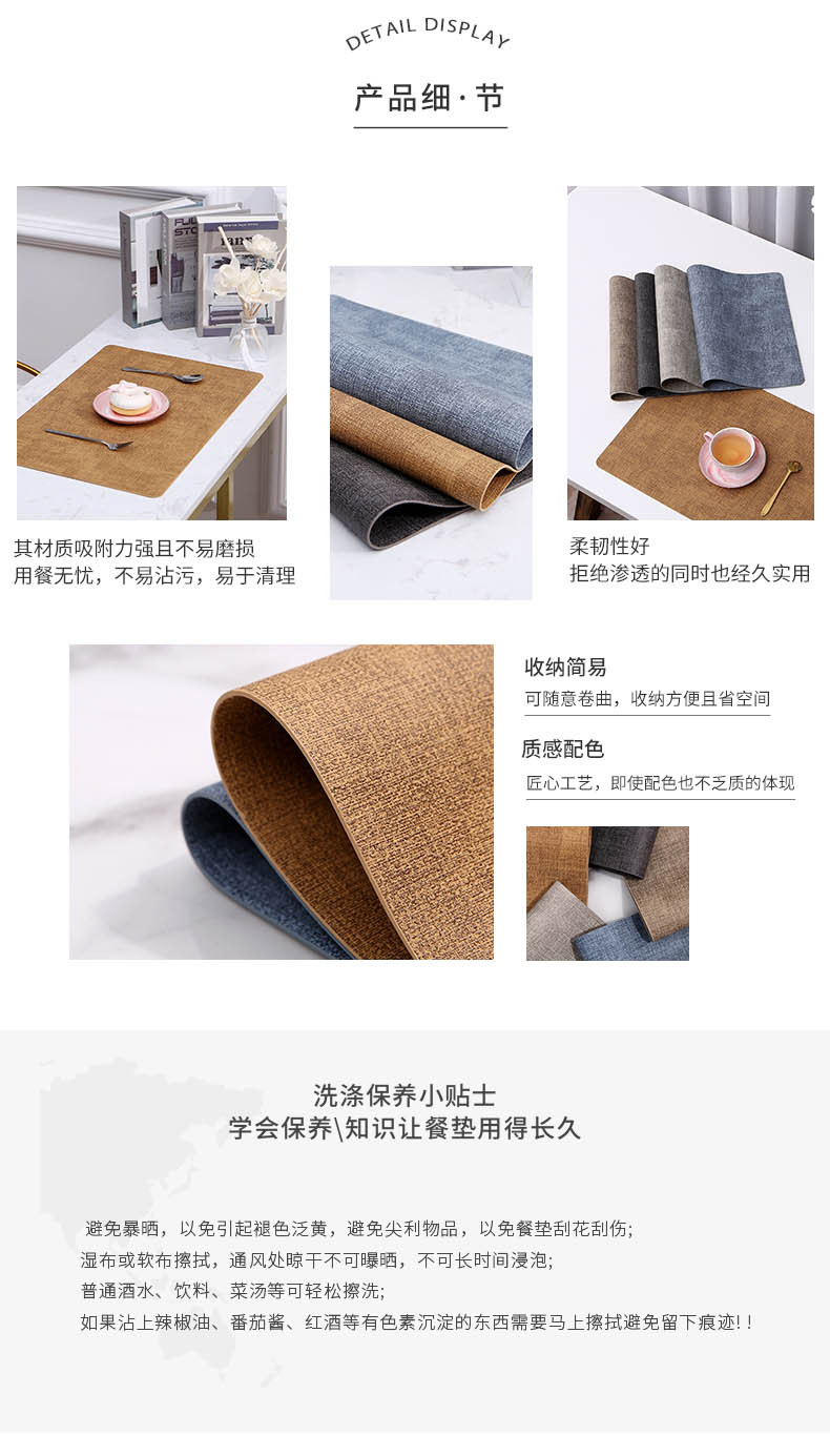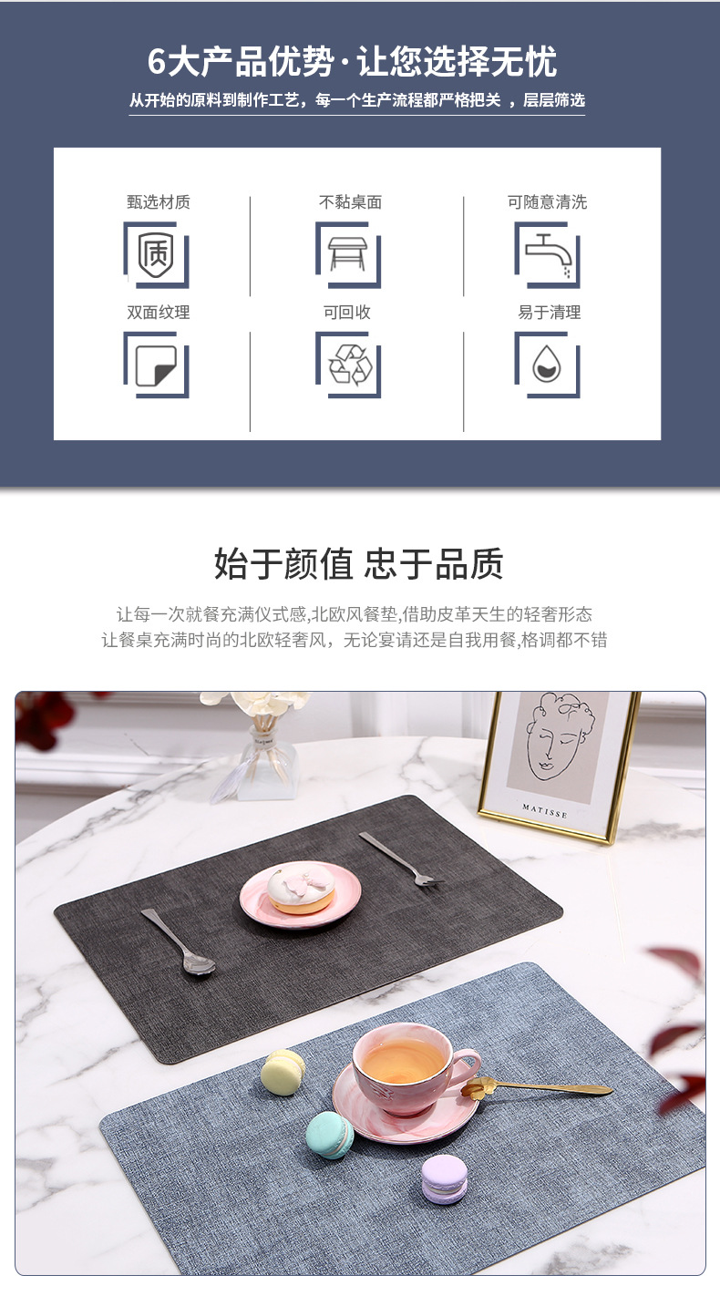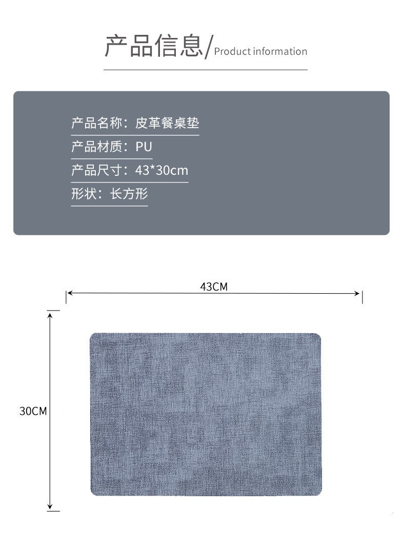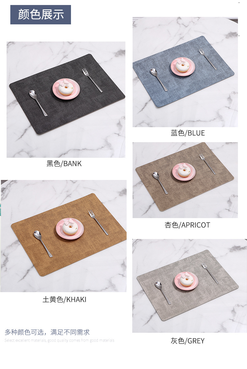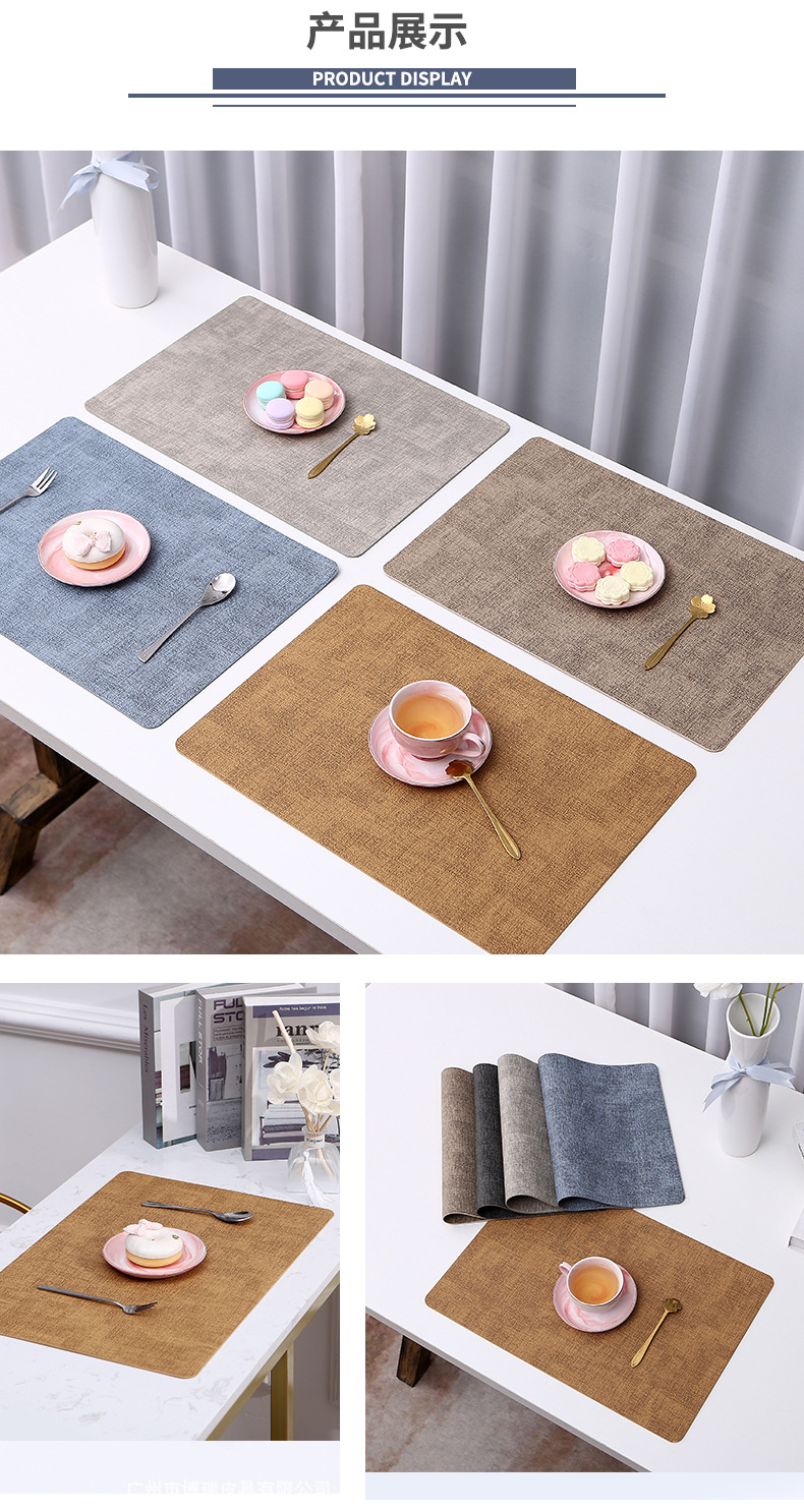 천 질감의 가죽 플레이스 매트, 방수 매트, 단열 식탁 매트, 고급 사각형 서양식 플레이스 매트, 맞춤형 로고의 국경 간 전문 공급스토어 가기