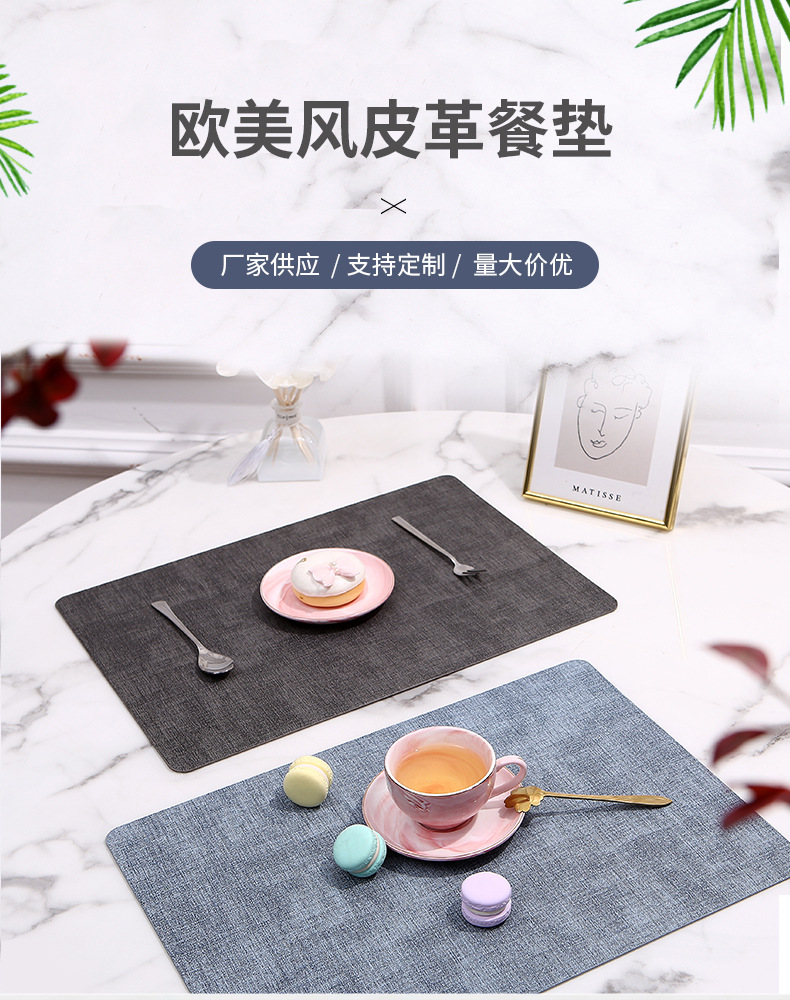 천 질감의 가죽 플레이스 매트, 방수 매트, 단열 식탁 매트, 고급 사각형 서양식 플레이스 매트, 맞춤형 로고의 국경 간 전문 공급