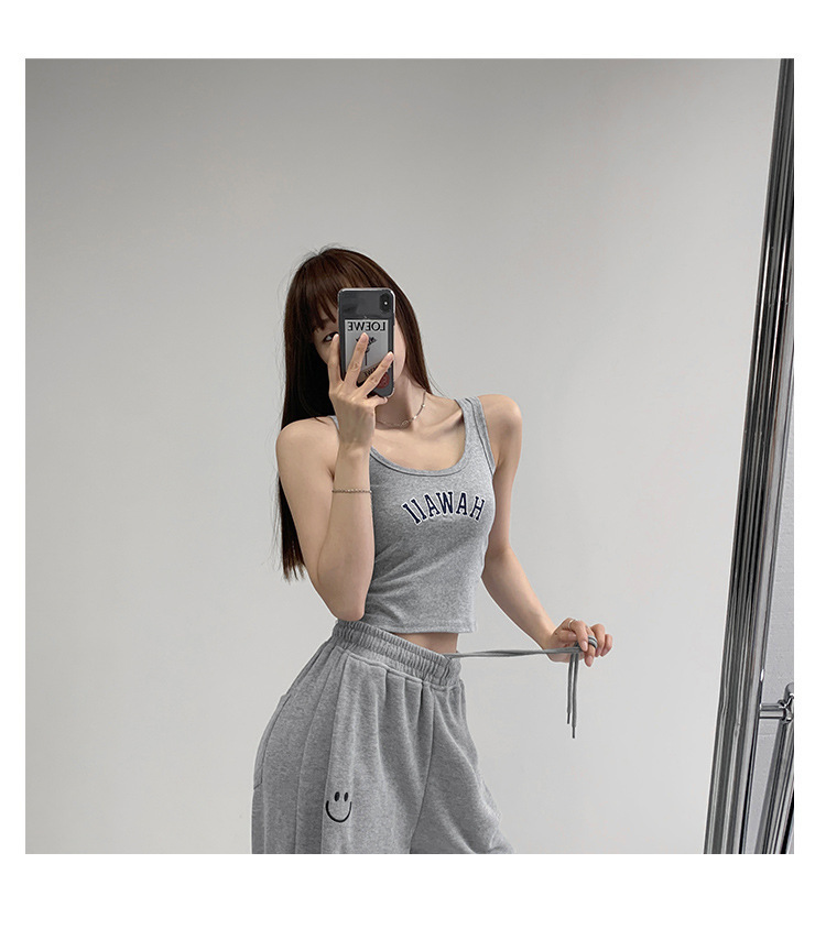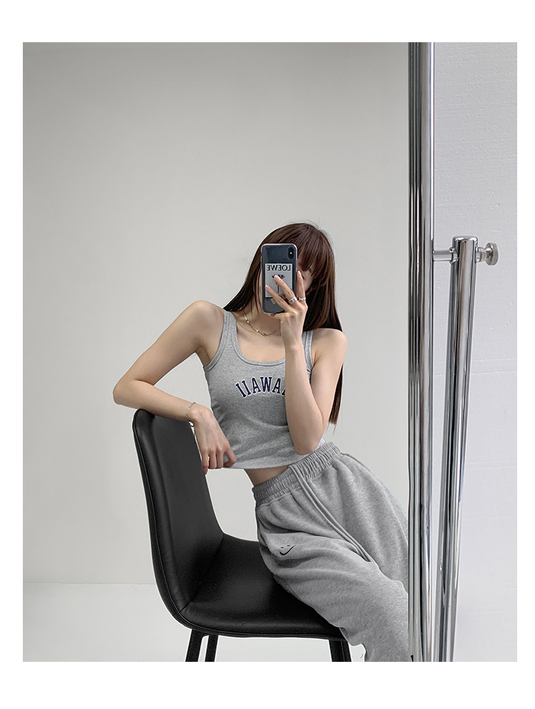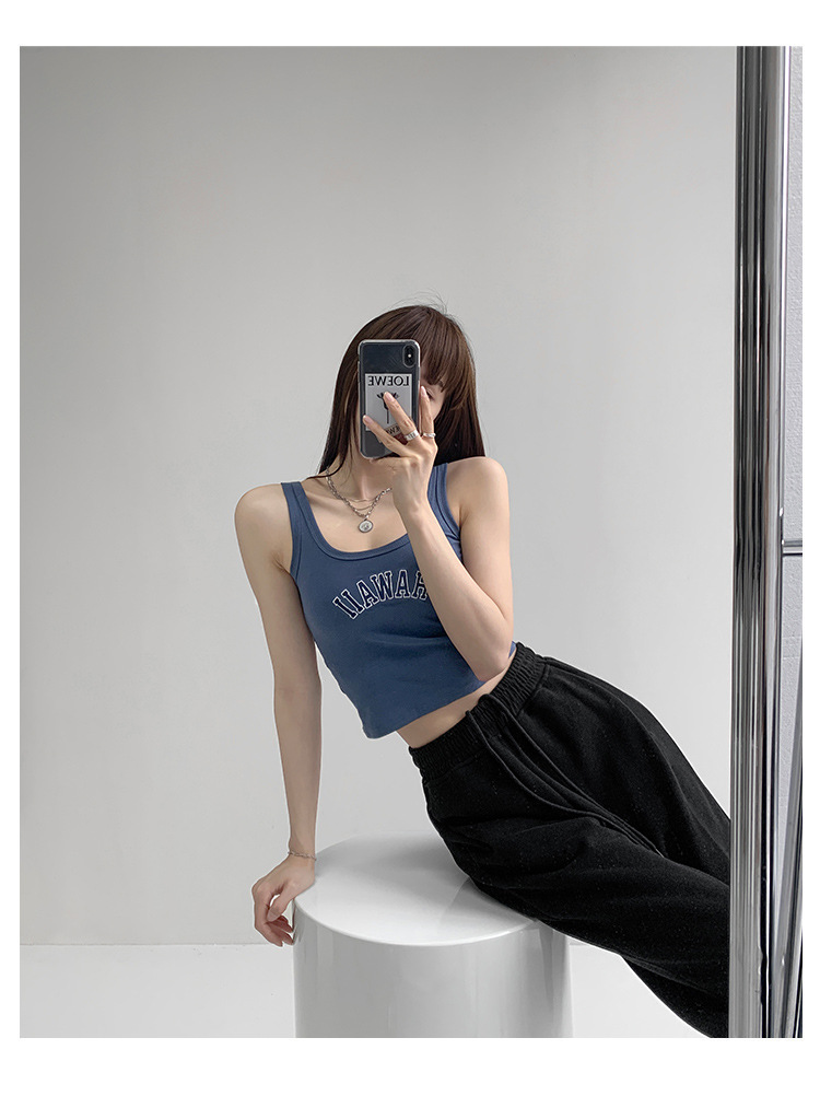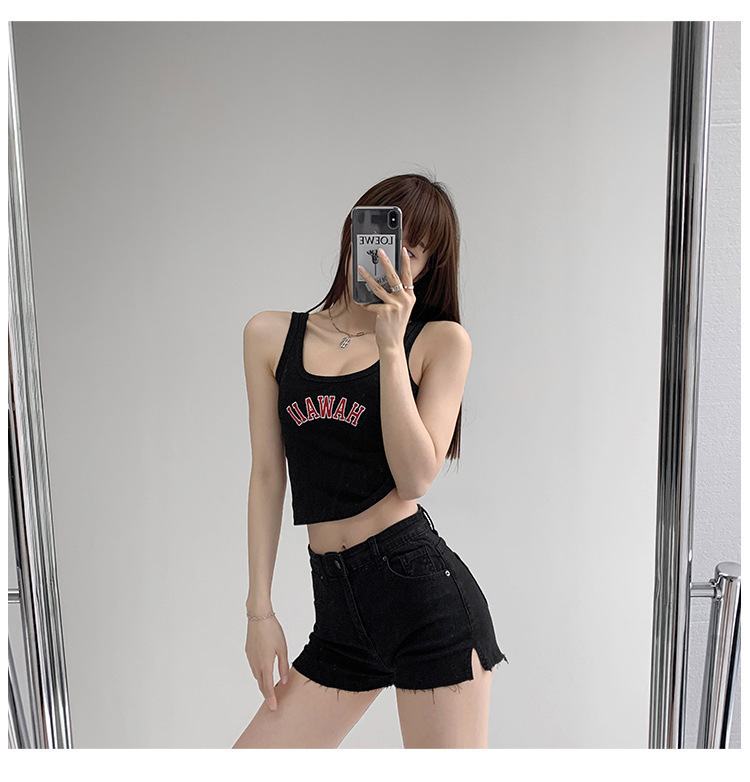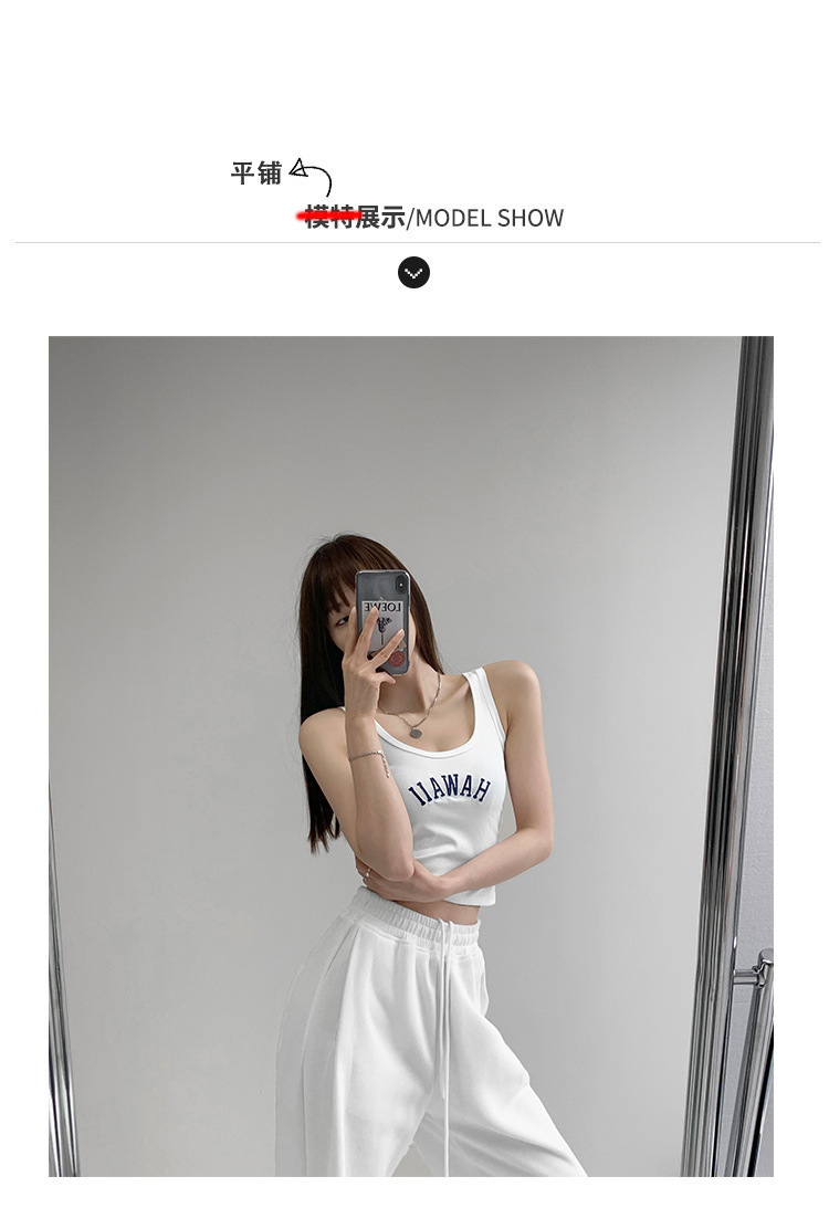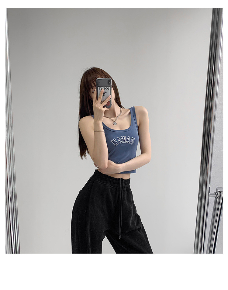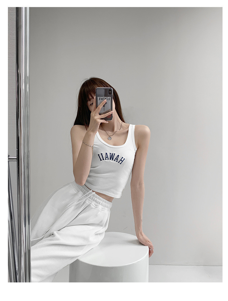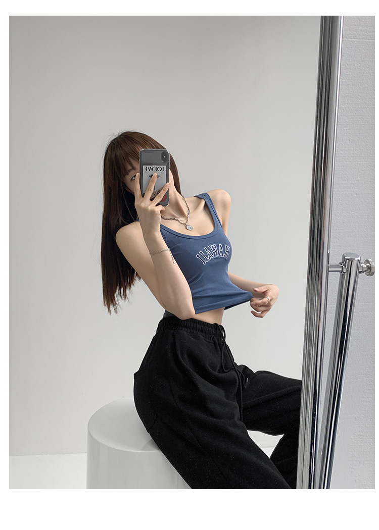 Zhao Silu 같은 스타일 BM 스타일 편지 자수 짧은 배꼽 슬링 조끼 벨트 가슴 패드 내부베이스