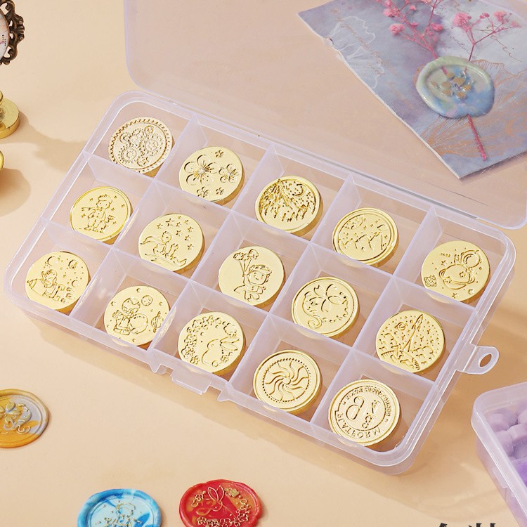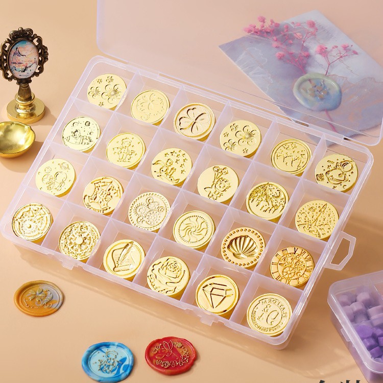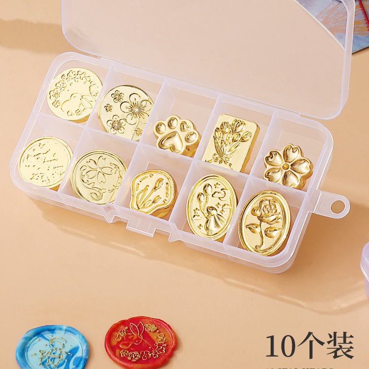 범용 씰링박스 세트, 저렴한 문자무늬 씰 헤드, 봉투, 초대장, 봉인, 엠보싱, 수첩, 블라인드 박스스토어 가기