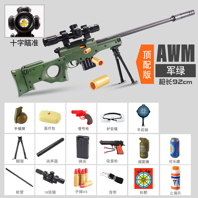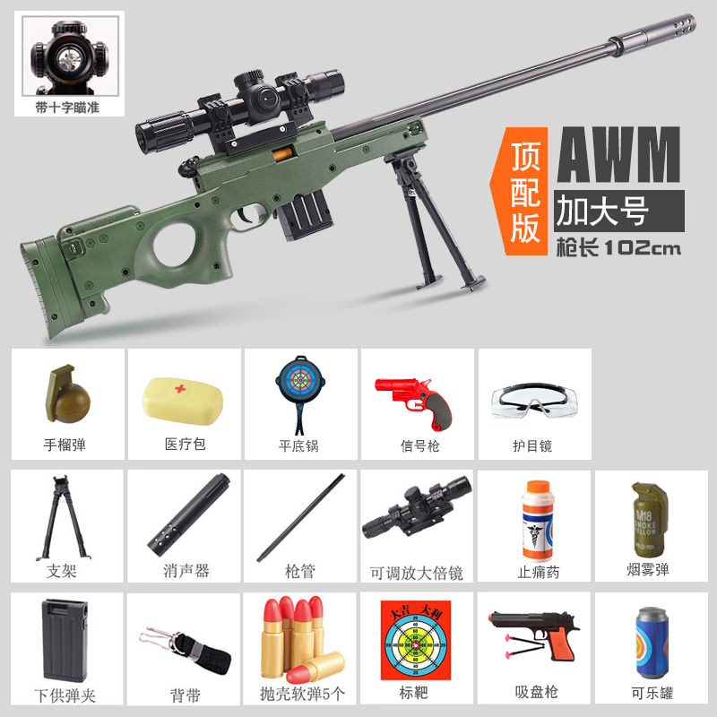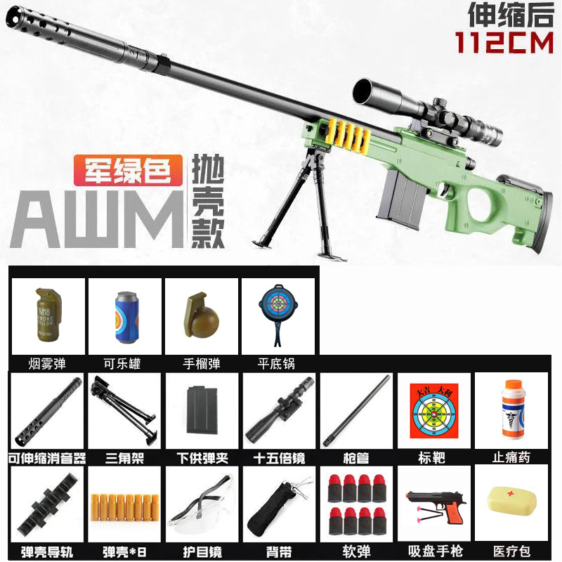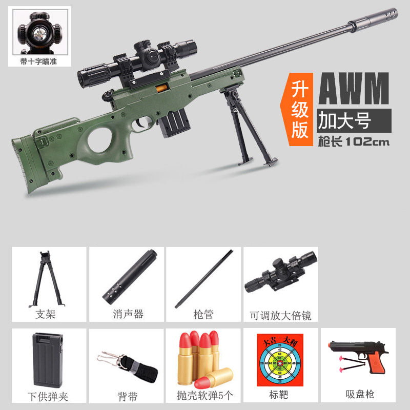 초대형 쉘 던지기 암 저격 소총 장난감 총 시뮬레이션 리얼 롭 98K 메커니즘 소프트 총알 총 달걀 소년 아이들이 닭고기를 먹는다스토어 가기