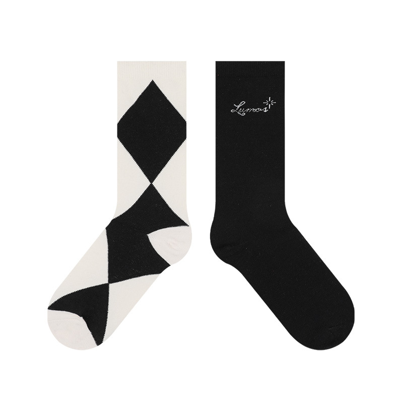 여성 비즈니스 스타일 비대칭 마름모 영국 학생 숙녀 양말 JK 양말 여성 중간 길이 양말 제조업체 도매