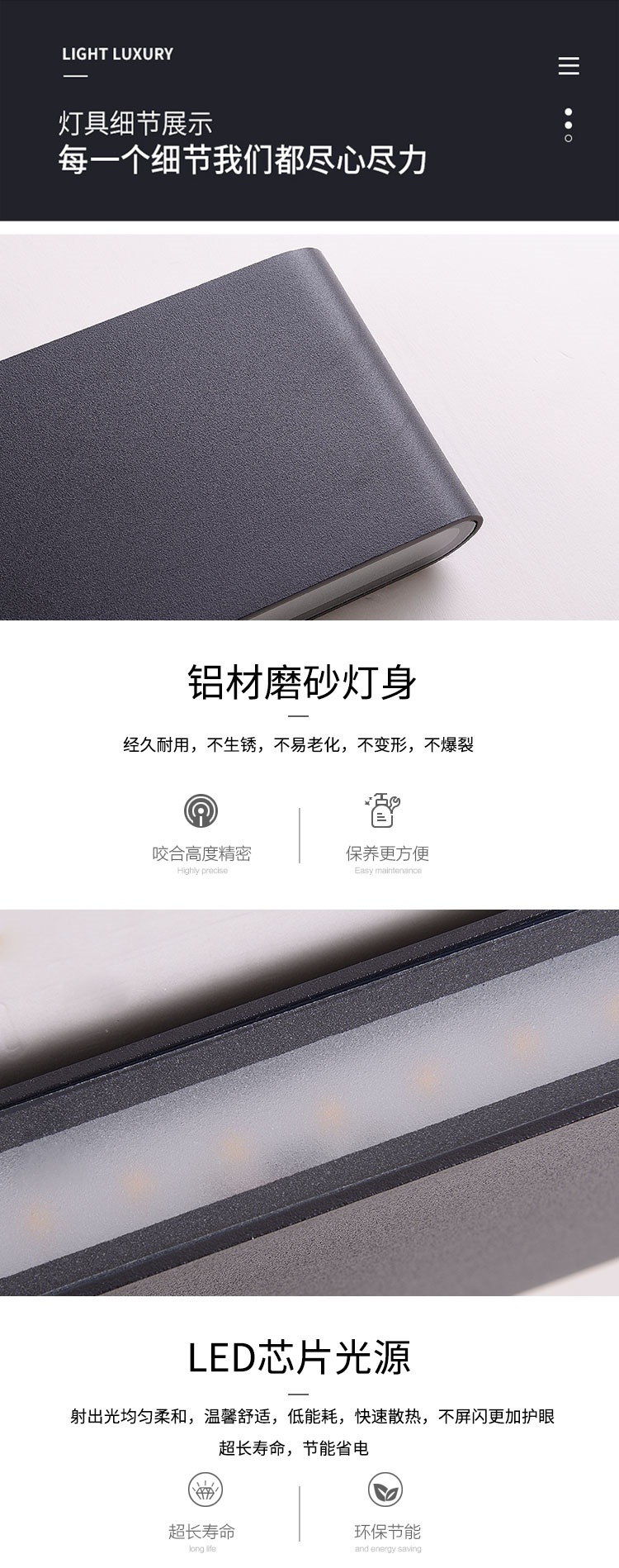 LED 야외 벽등은 위아래로 빛을 발합니다. 거실, 서재, 배경벽, 계단, 복도, 침실, 침대 옆 램프, 미니멀리스트 스타일스토어 가기