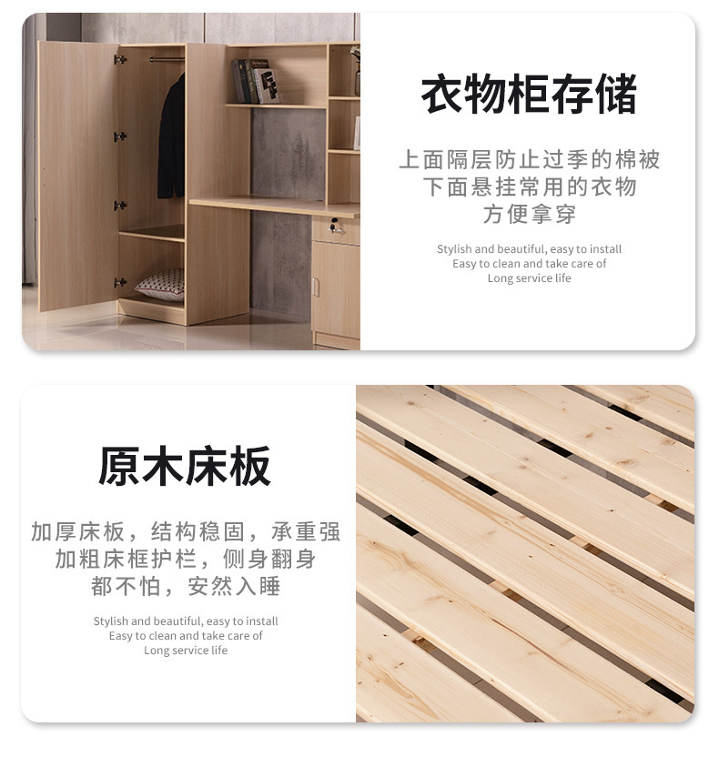 아파트 침대 침대 하부 테이블 대학생 단철 옷장 책상 통합 직원 기숙사 성인 상부 침대 및 하부 캐비닛 조합스토어 가기