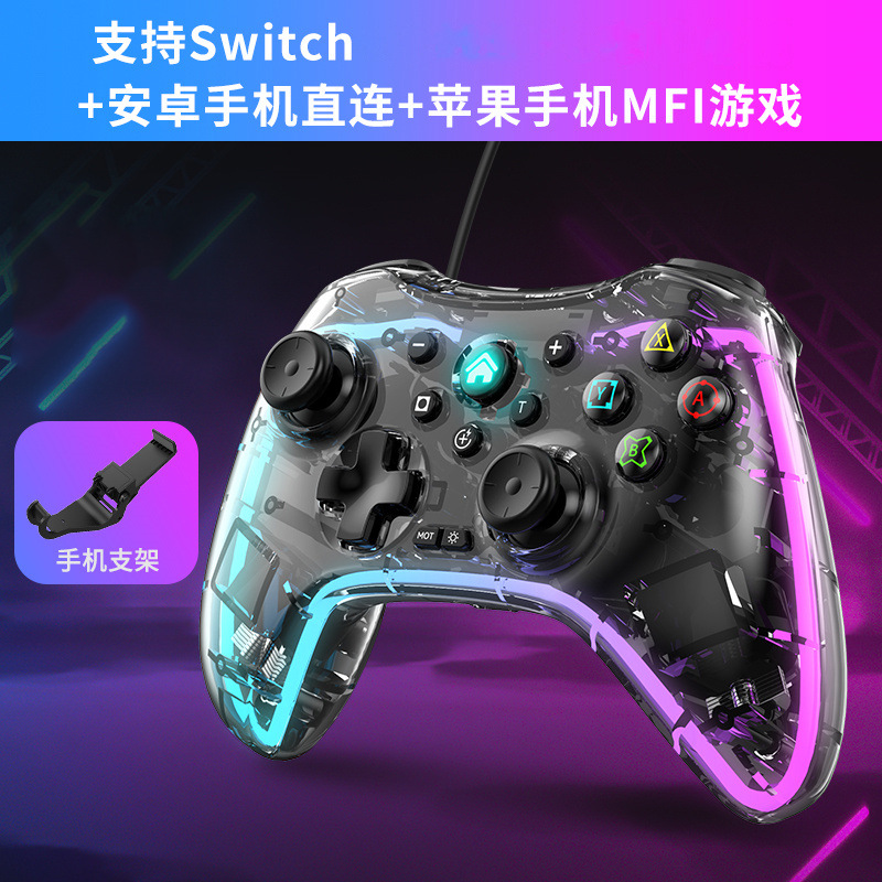 스위치 투명 RGB 눈부신 빛 블루투스 게임 핸들 컴퓨터 휴대 전화 안드로이드 기관차 엘리트 스위치 핸들