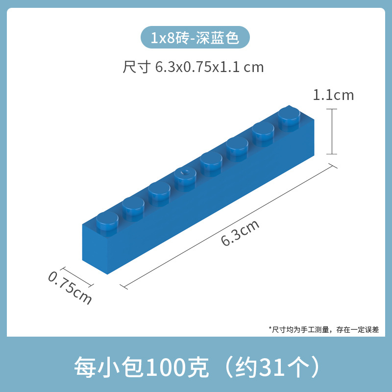 • 작은 입자 1*8 두꺼운 벽돌 8 구멍 다크 블루 100g