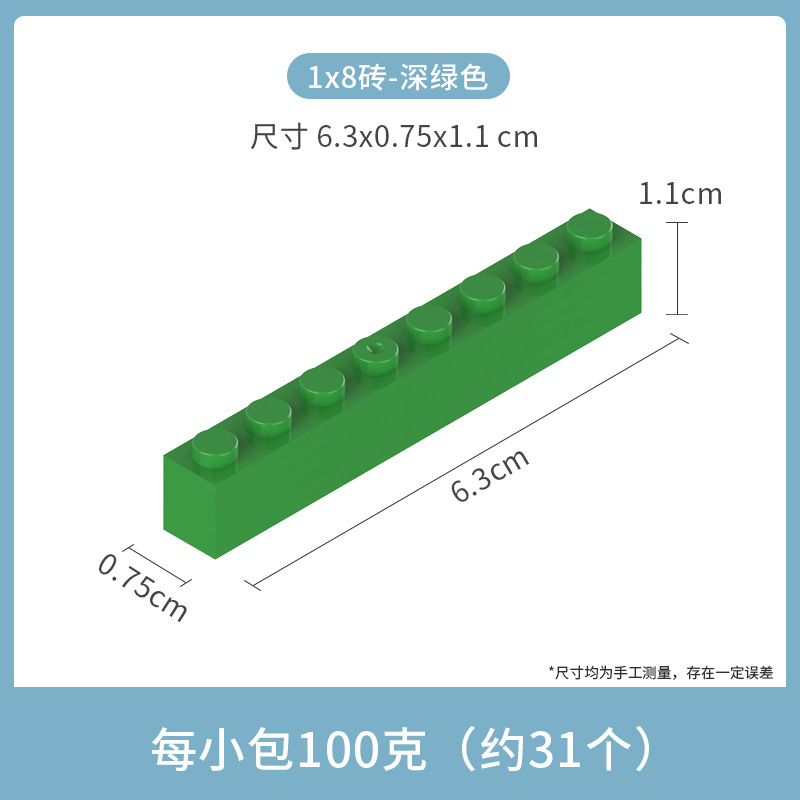 • 작은 입자 1*8 두꺼운 벽돌 8 구멍 다크 그린 100g