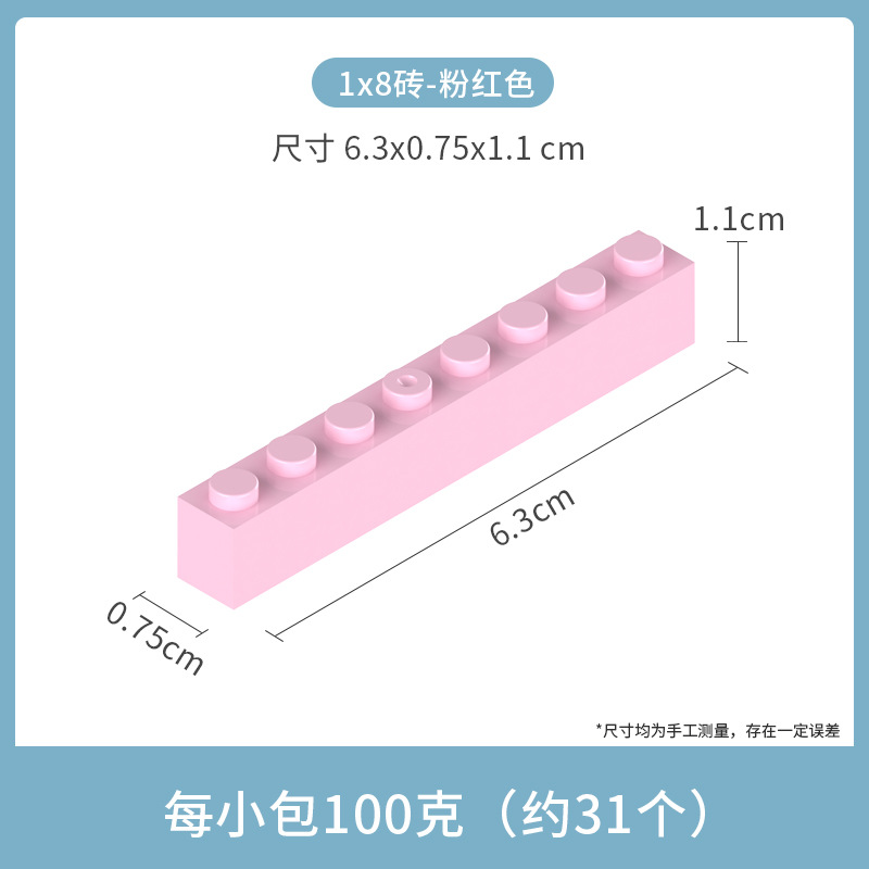 • 작은 입자 1*8 두꺼운 벽돌 8 구멍 핑크 100g