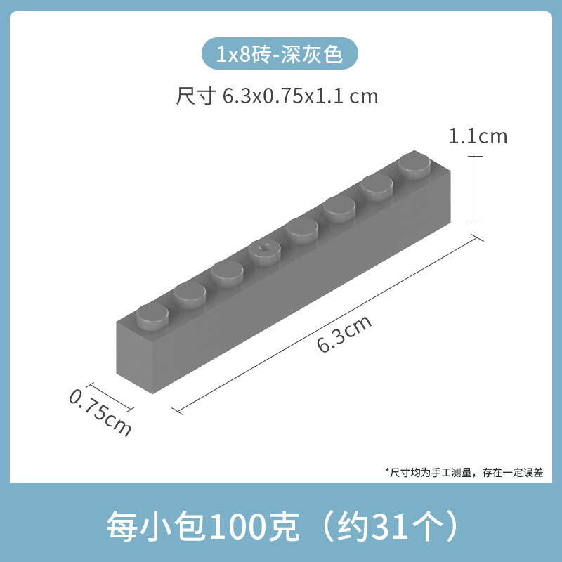 • 작은 입자 1*8 두꺼운 벽돌 8 구멍 다크 그레이 100g