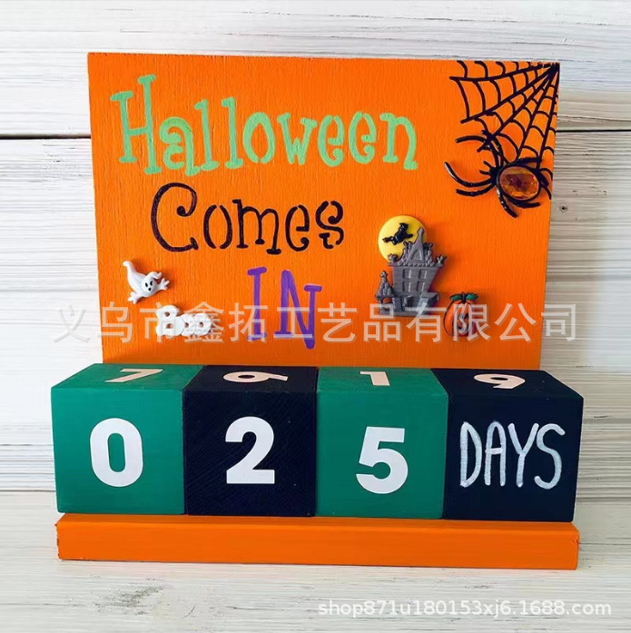 跨境独立站新款创意节日特色木质摆件万圣节倒计时日历节日氛围饰