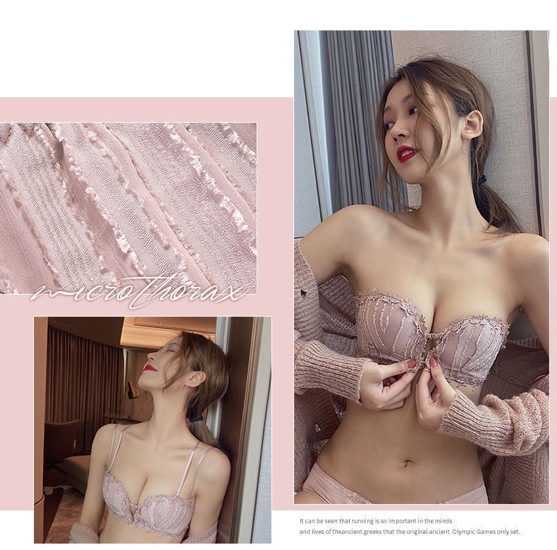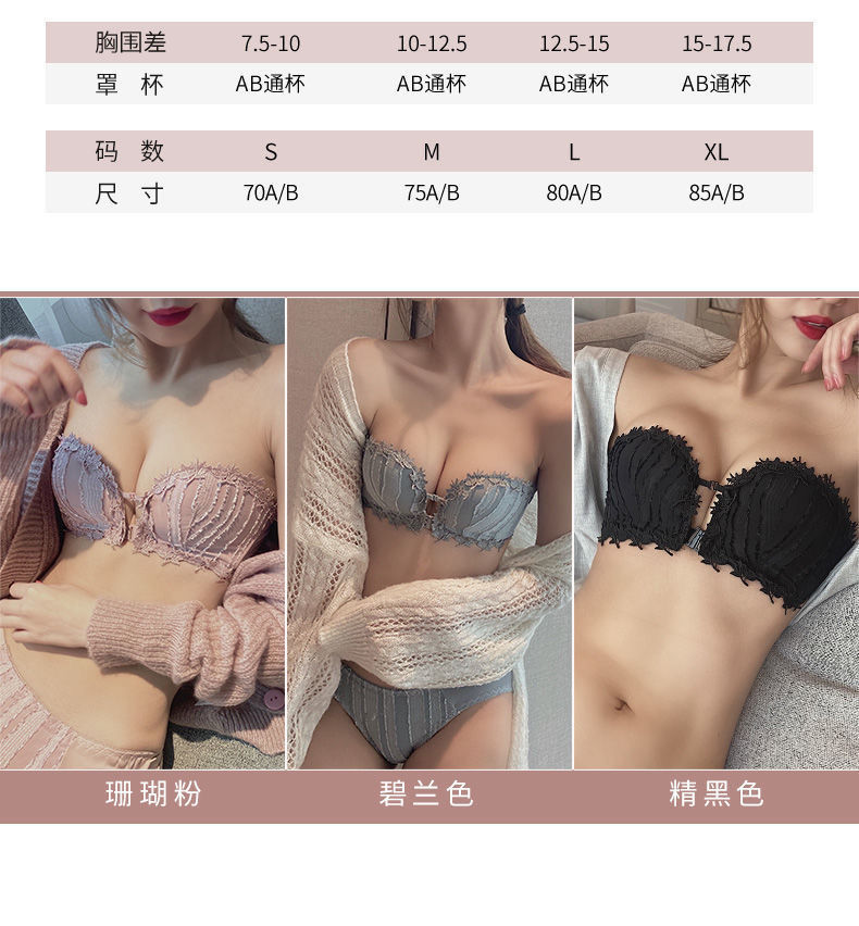 작고 큰 속옷 앞 버클 일본식 끈이없는 여성의 개더 끈이없는 미끄럼 방지 소녀의 포장 브래지어 세트스토어 가기