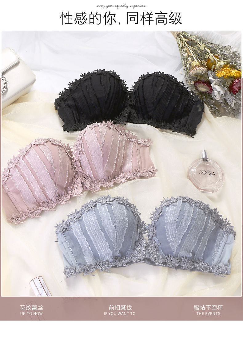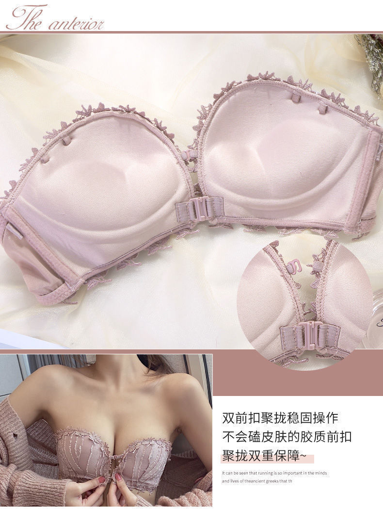 작고 큰 속옷 앞 버클 일본식 끈이없는 여성의 개더 끈이없는 미끄럼 방지 소녀의 포장 브래지어 세트