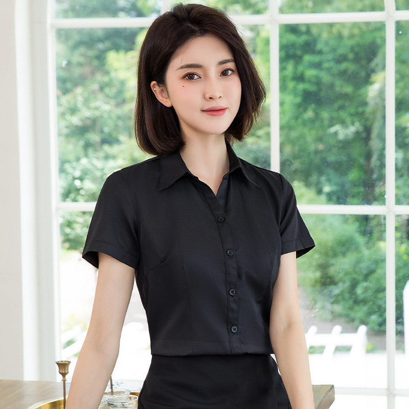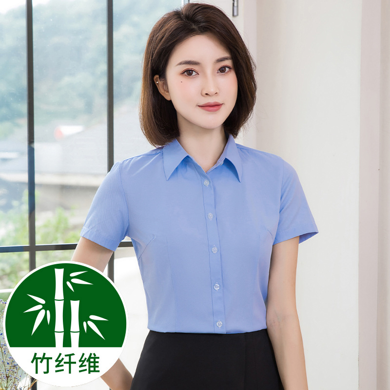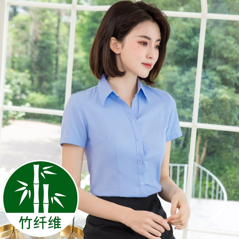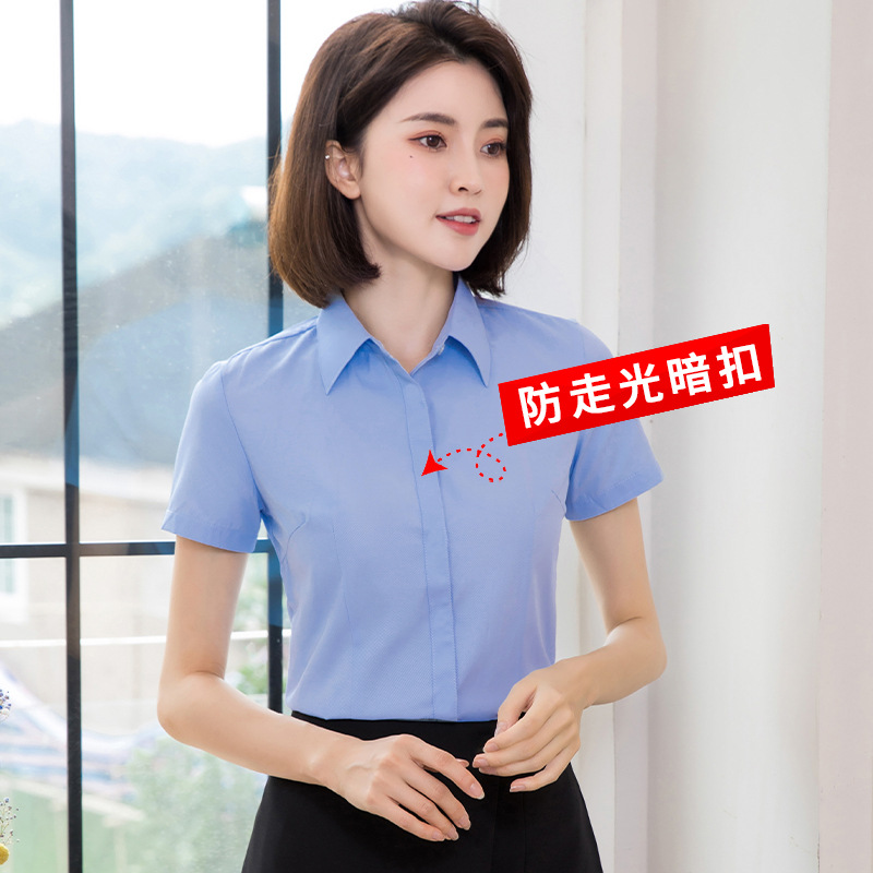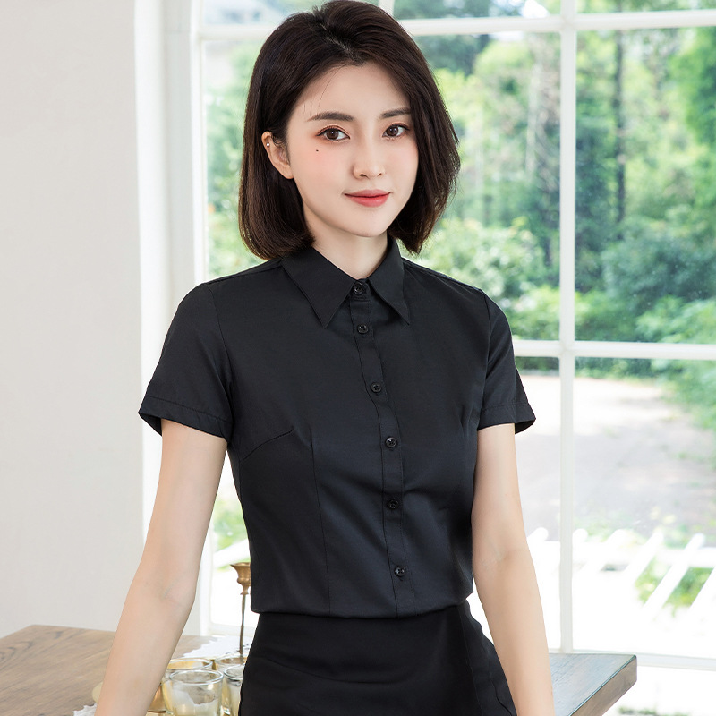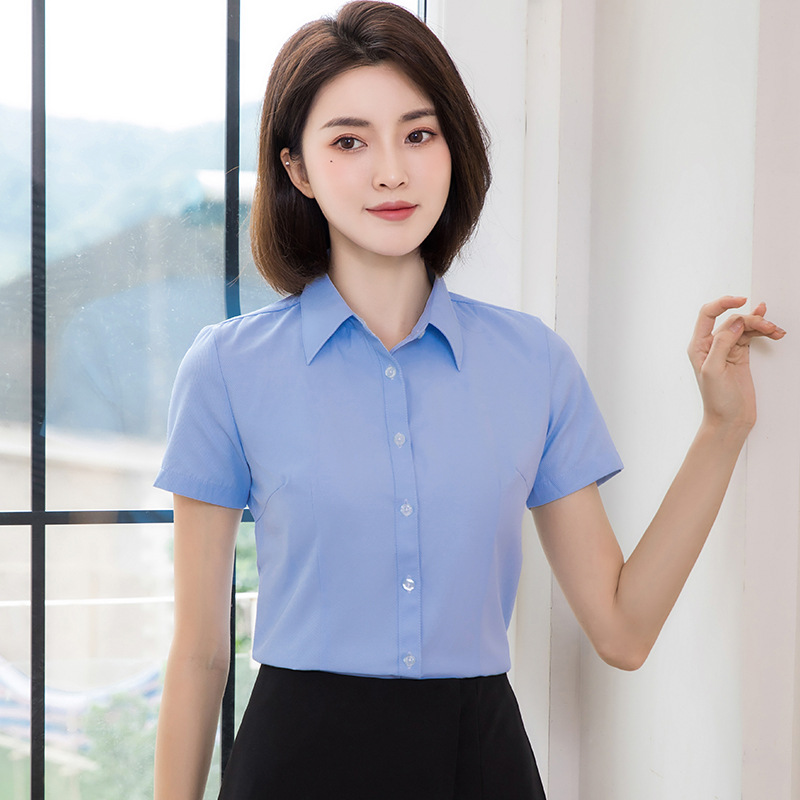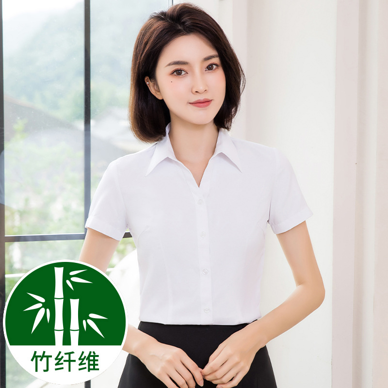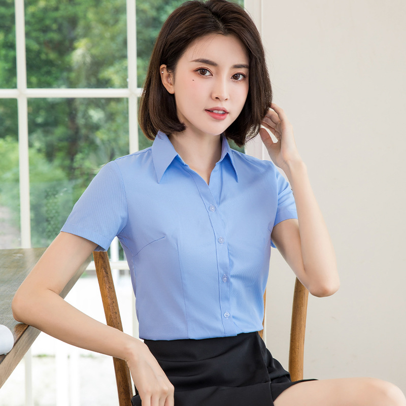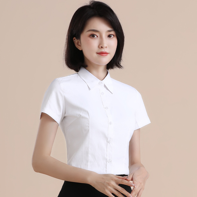 흰색 작업 셔츠 반팔 여성의 여름 새로운 비즈니스 착용 얇은 정장 플러스 사이즈 불투명 흰색 셔츠 작업복스토어 가기