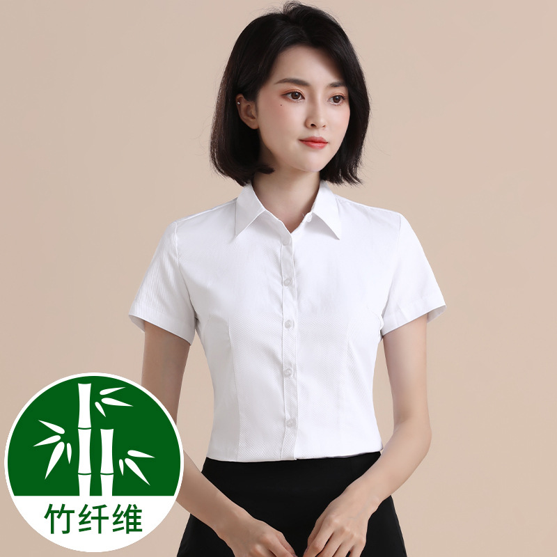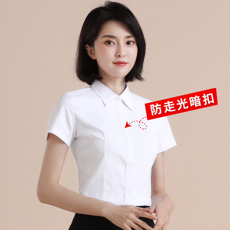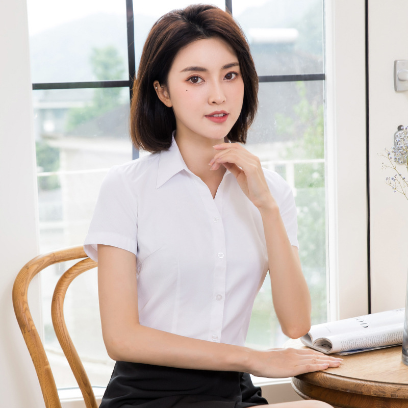 흰색 작업 셔츠 반팔 여성의 여름 새로운 비즈니스 착용 얇은 정장 플러스 사이즈 불투명 흰색 셔츠 작업복