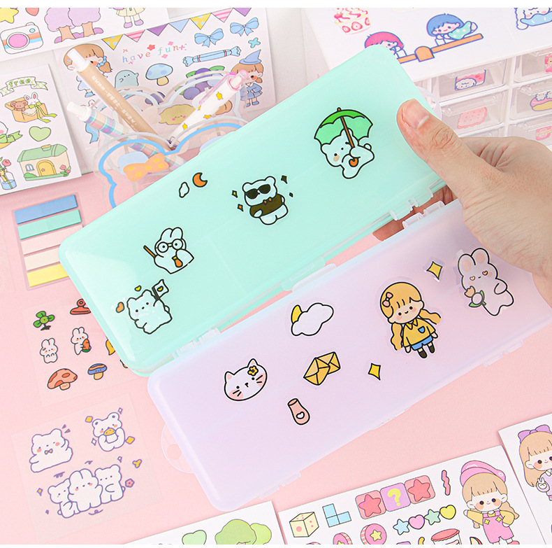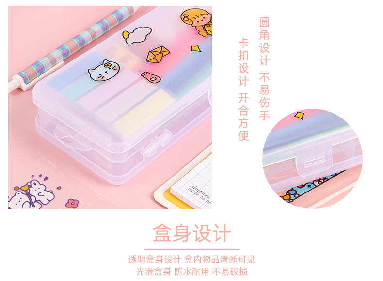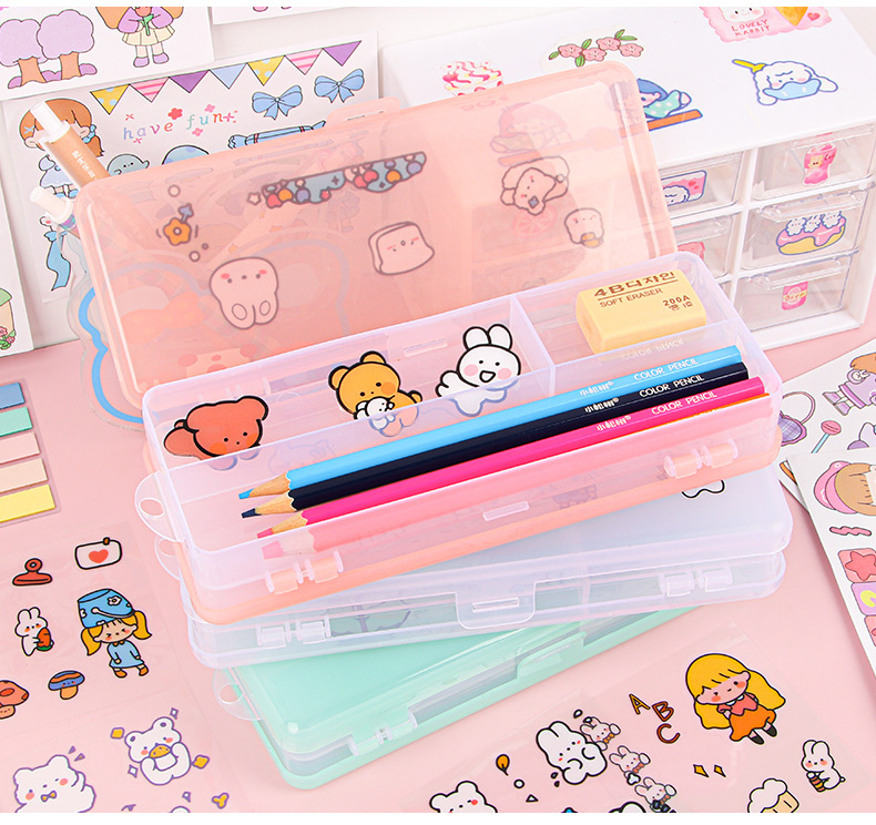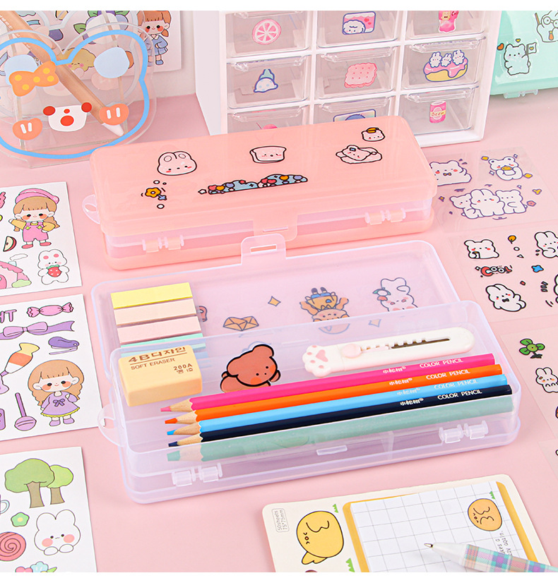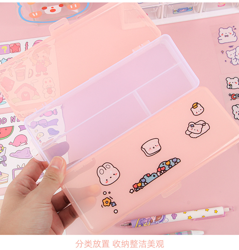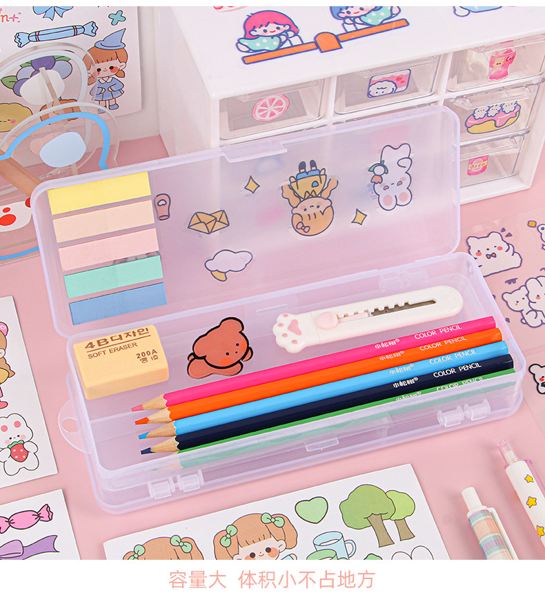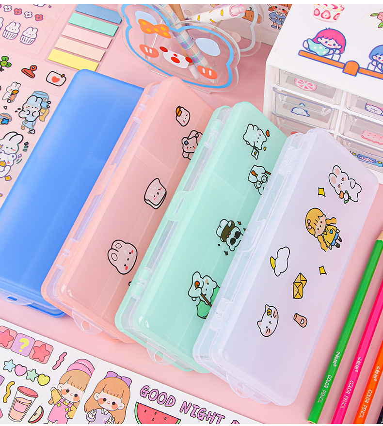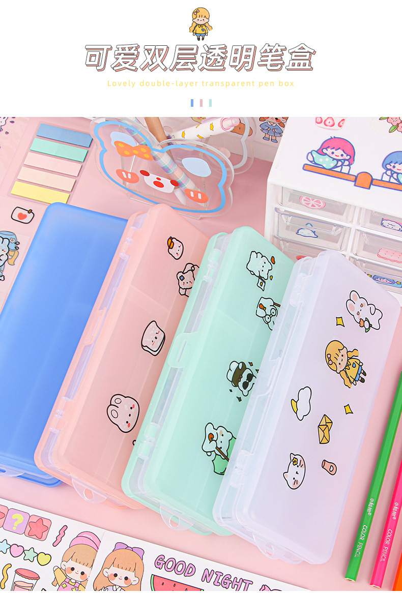 더블 레이어 문구 상자 투명 젖빛 대용량 플라스틱 연필 상자가 될 수 있습니다 DIY 초등 및 중등 학교 문구 보관 상자