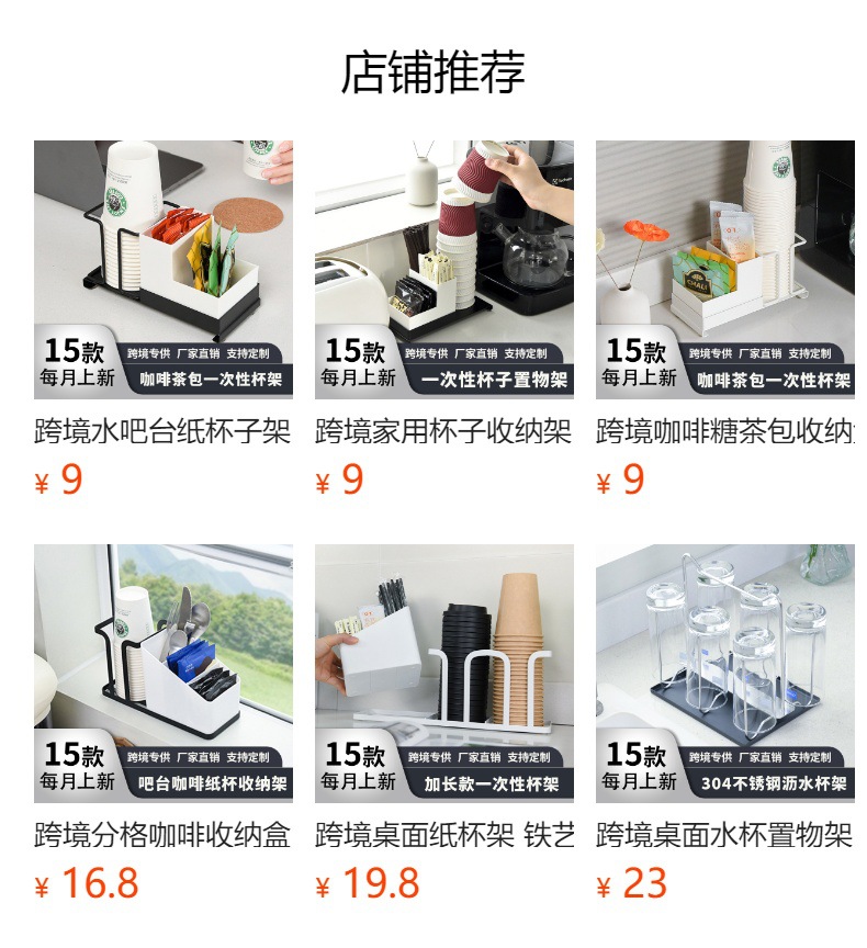국경 커피 설탕 티백 보관 상자 우유 차 잎 구획 보관 상자 홈 데스크탑 바 일회용 컵 홀더스토어 가기