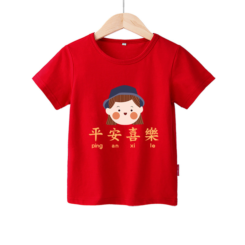 2025년 뱀의 해 가족 커플룩 가족복 어린이 반팔 티셔츠 여자아이 빨간색 새해 남자아이 반팔 티셔츠