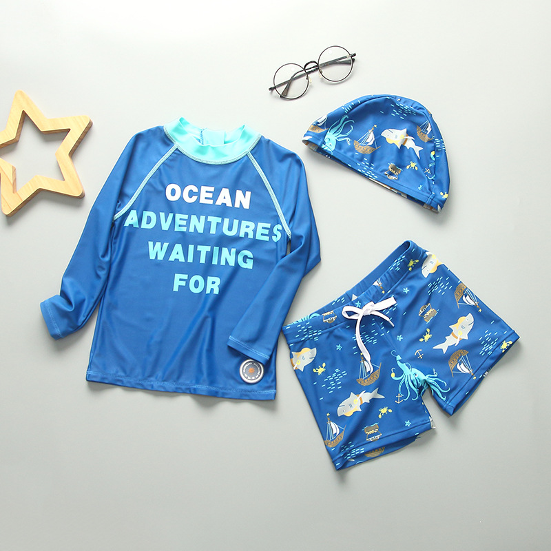 韩国潮童儿童泳衣男童分体长袖游泳衣小中大童防晒速干沙滩冲浪服
