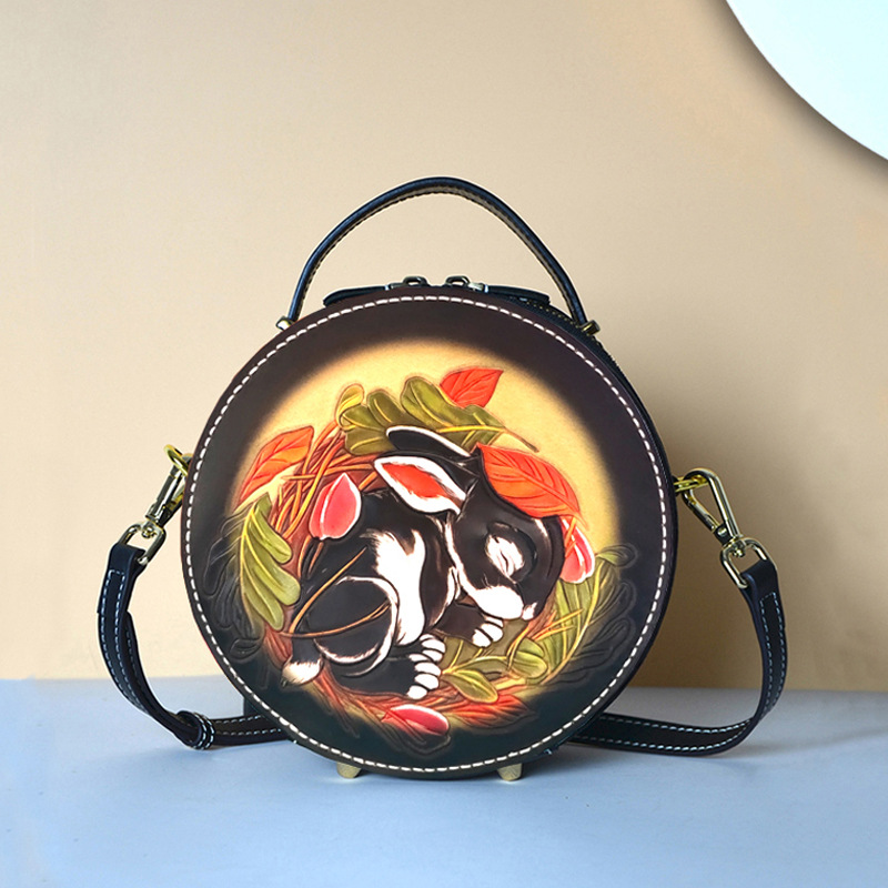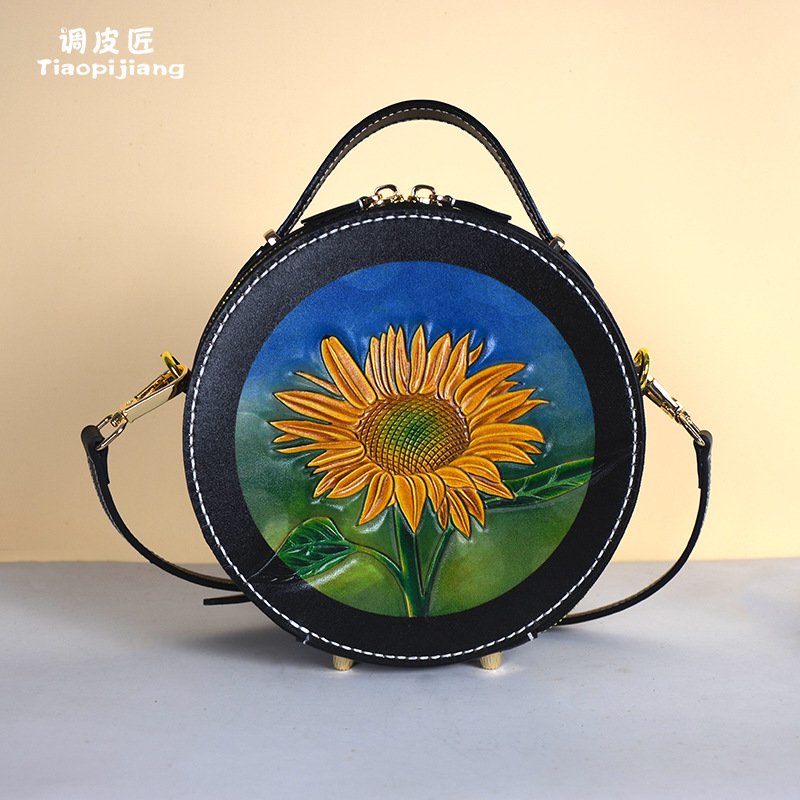 팅커 크로스바디 백 여성용 여름 모든 경기 스몰 라운드 백 디자인 틈새 핸드백 정품 가죽 수제 조각 가죽 가방스토어 가기