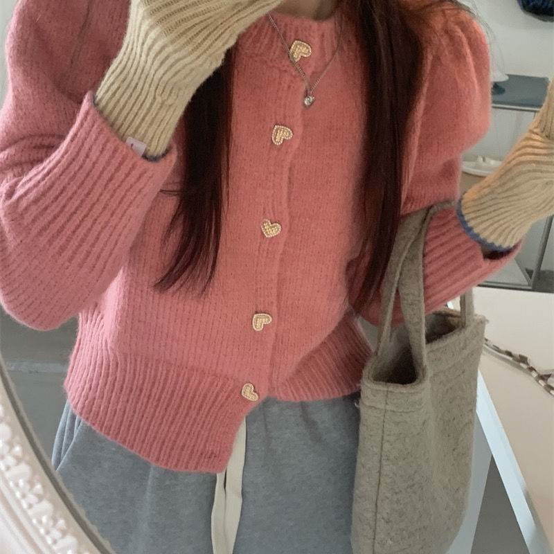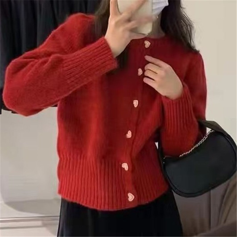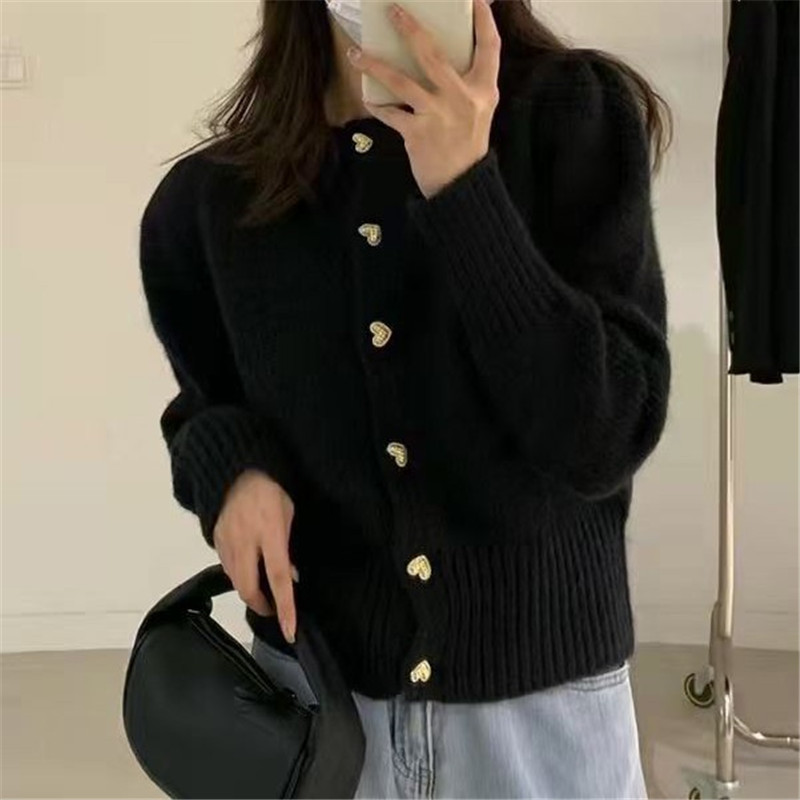 스웨터 재킷 여성 가을 새로운 한국의 부드러운 바람 긴 소매 사랑 버클 짧은 느슨한 니트 카디건 탑 조수스토어 가기