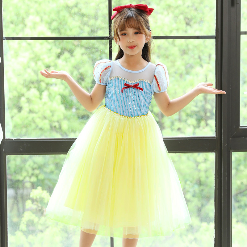 백설공주 여아 드레스 어린이 퍼프 스커트 공주 드레스 여름 드레스 반짝이고 귀여운 다용도 어린이 공연 의상