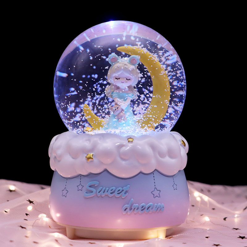 문 프린세스 크리스탈 볼 뮤직 박스 만화 장식품 눈 빛 학생 창조적 인 선물 생일 선물 부티크