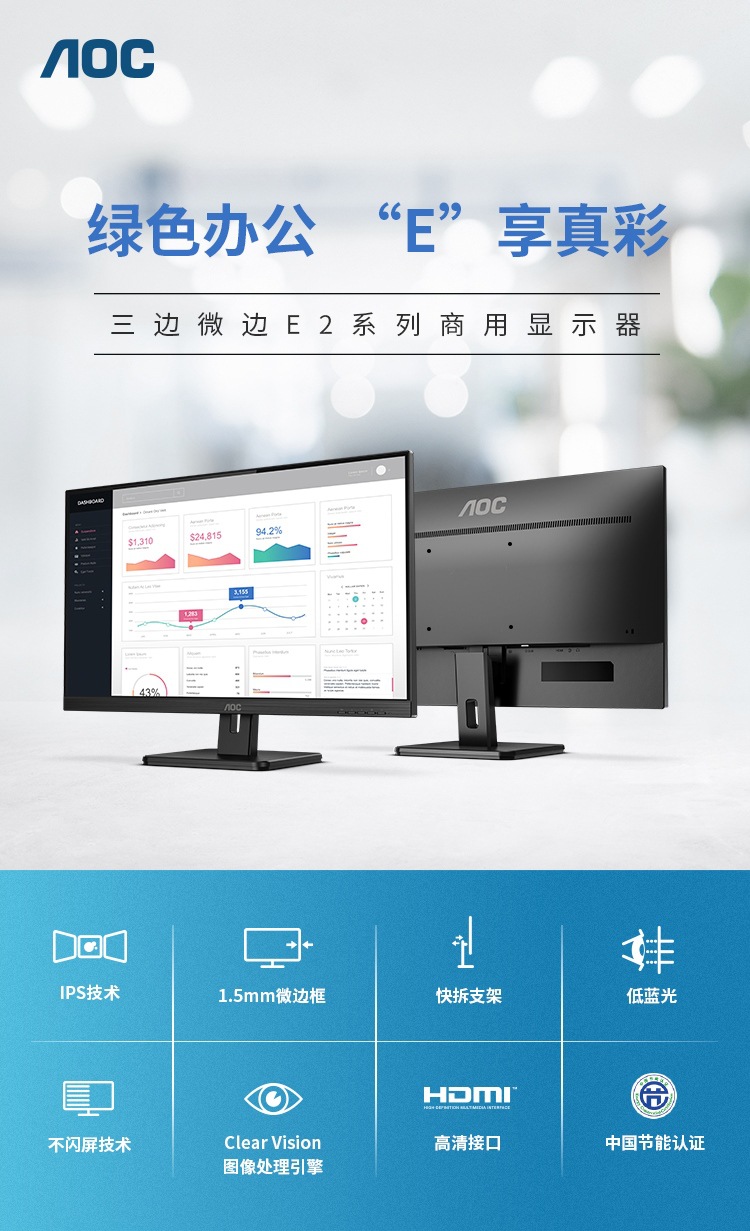 AOC 컴퓨터 모니터에 적합 21.5 인치 풀 HD IPS 좁은 프레임 HDMI HD 인터페이스 빠른 릴리스스토어 가기