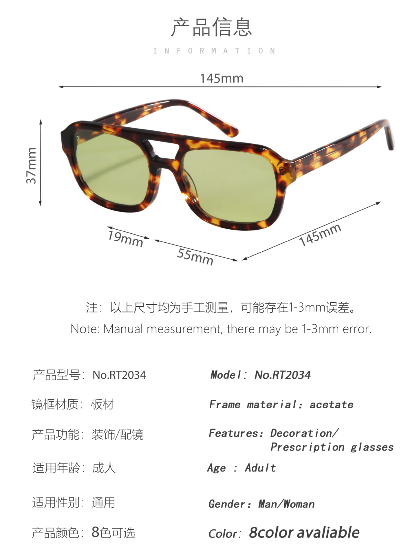 고급 센스 더블 빔 패션 크로스 보더 트렌드 선글라스 남성과 여성의 유럽 및 미국 패션쇼 플레이트 선글라스
