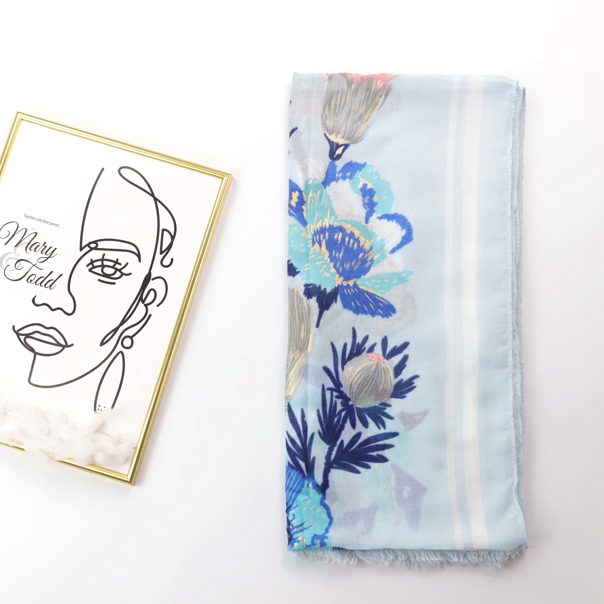대외 무역 크로스 보더 라이브 브론징 모란 인쇄 실크 스카프 새틴 면 부드러운 느낌 여성의 긴 스카프 봄과 여름 스카프 숄스토어 가기