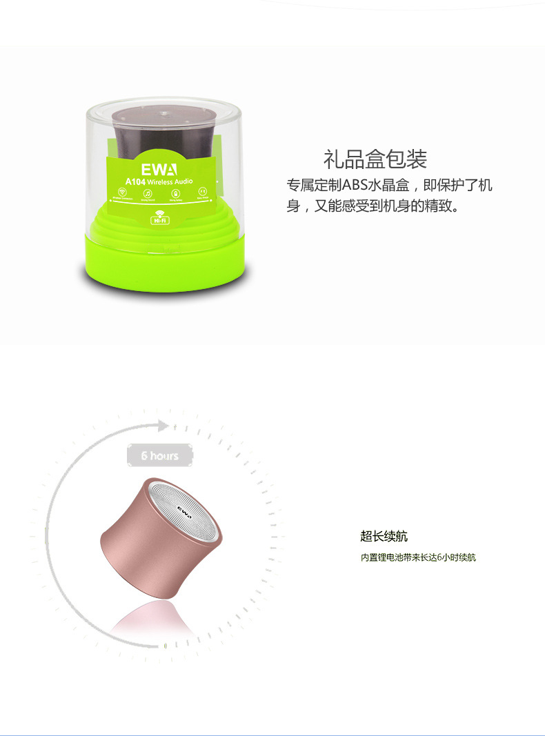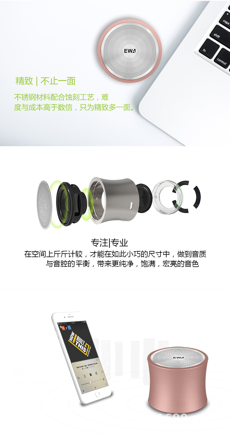 사랑을위한 EWA/톤 A104 작은 허리 스틸 건 블루투스 스피커 서브 우퍼 카드 휴대용 서브 우퍼 하이 퀄리티