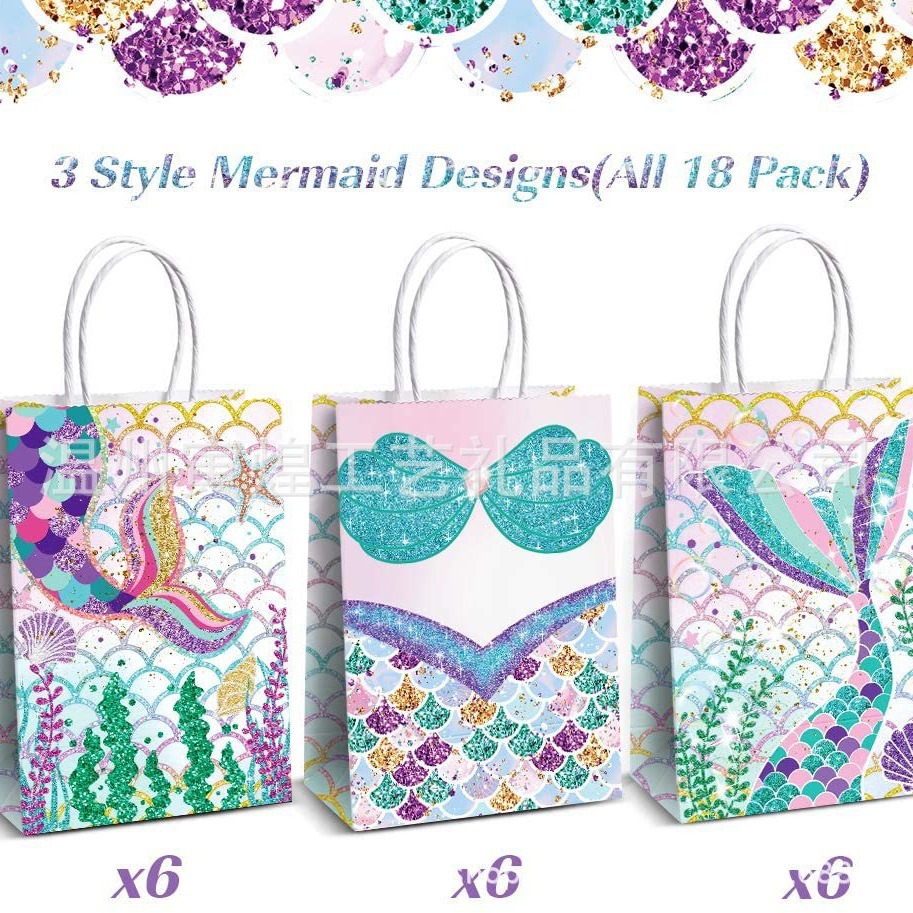 국경 간 전자 상거래 아마존 인어 테마 생일 파티 크래프트 종이 가방 사탕 가방 선물 가방