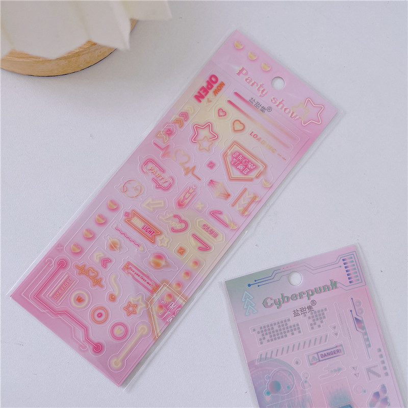 집에서 만든 스티커 사이버 펑크 기술 트렌드 goo 카드 goo 접시 장식 재료 백킹 핸드 계정 DIY 스티커