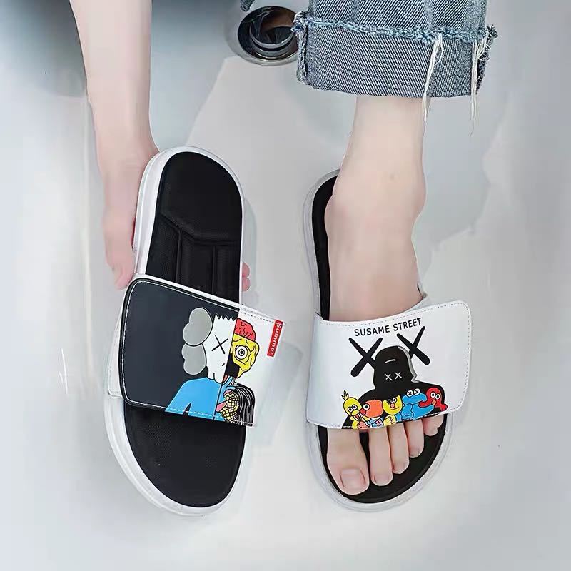 남성용 한국 스타일 개성있는 대형 슬리퍼, 남성 여름 트렌디한 외출용 패션 슬리퍼, 커플용 야외용 미끄럼 방지 슬리퍼