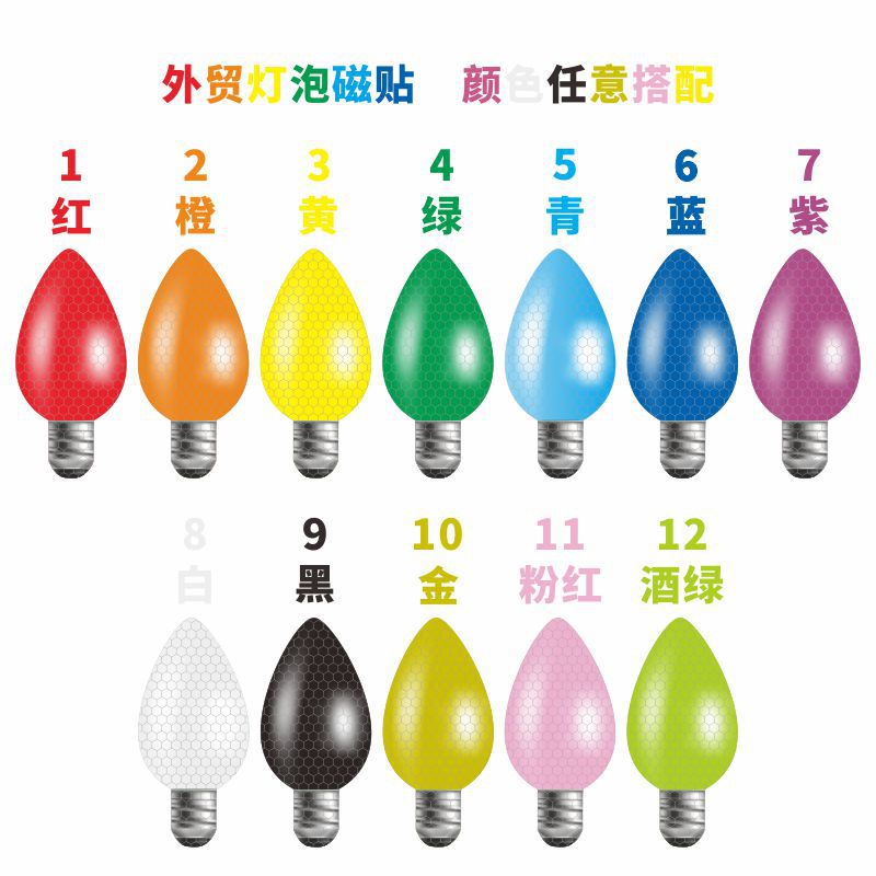 跨境圣诞灯泡反光磁贴汽车冰箱车库反光灯泡磁贴免费来图打样