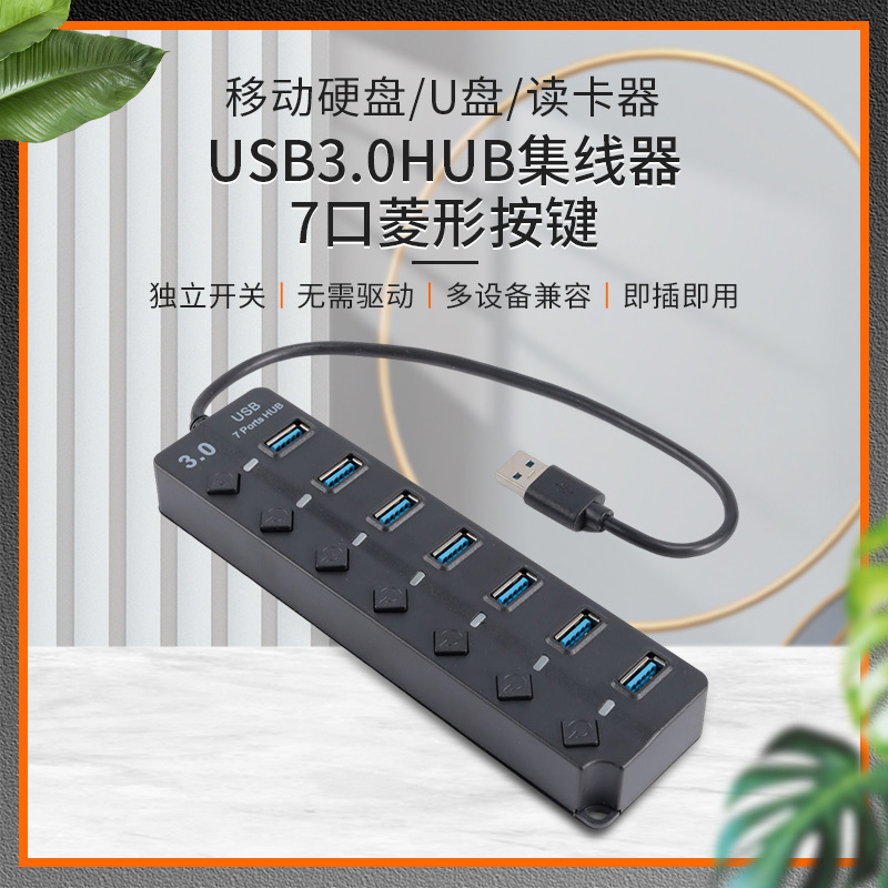 USB3.0HUB 허브 7 포트 다이아몬드 키 1-7 익스텐더 확장 도크 컴퓨터 액세서리 고속 전송스토어 가기