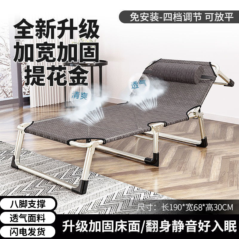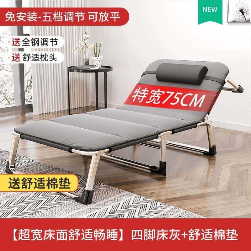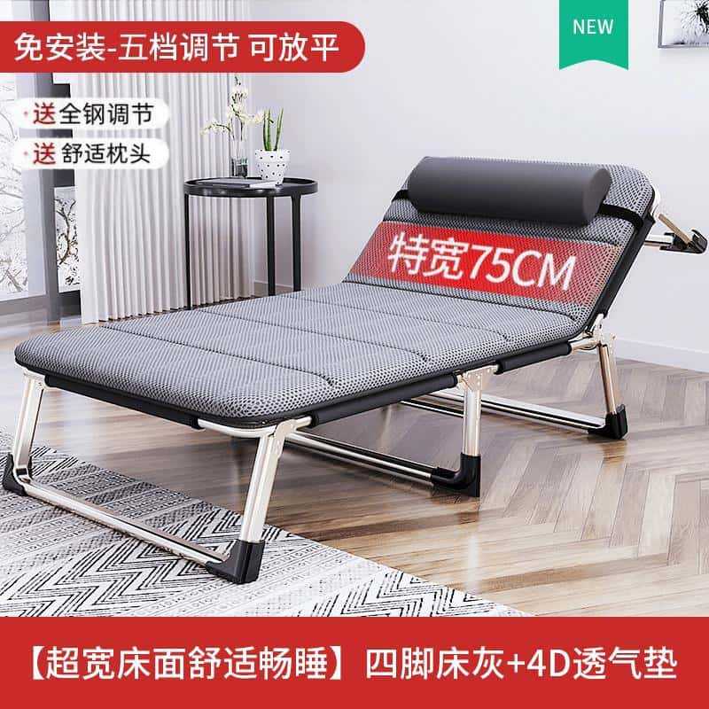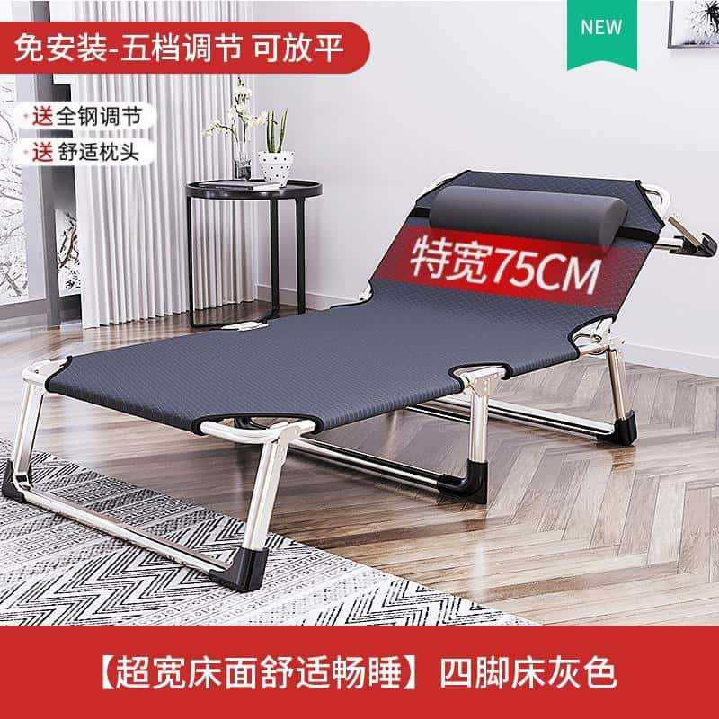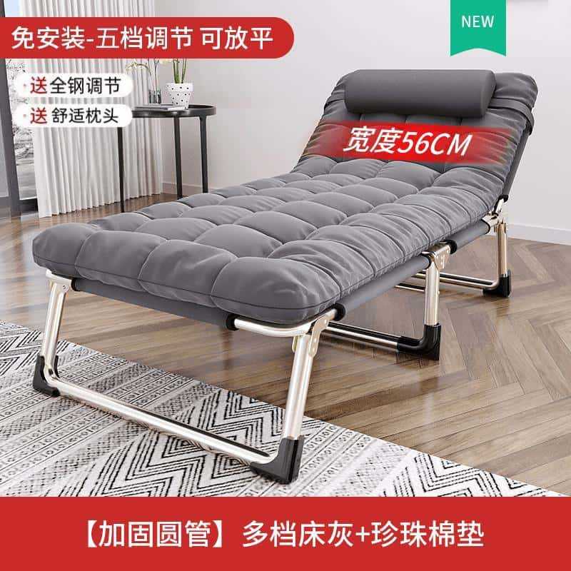 56圆管灰三脚款:175*56*30,68宽扁方管四脚款:190*68*30cm,75宽全扁方管四脚款:190*75*30cm。常规款床面为牛津布床面,四脚款的为头部多一只承重支撑脚,共4条支撑脚。三脚的头部无支撑脚,共3条支撑脚。圆管直径22mm,厚度0.7mm;方管直径25mm,厚度0.7mm。