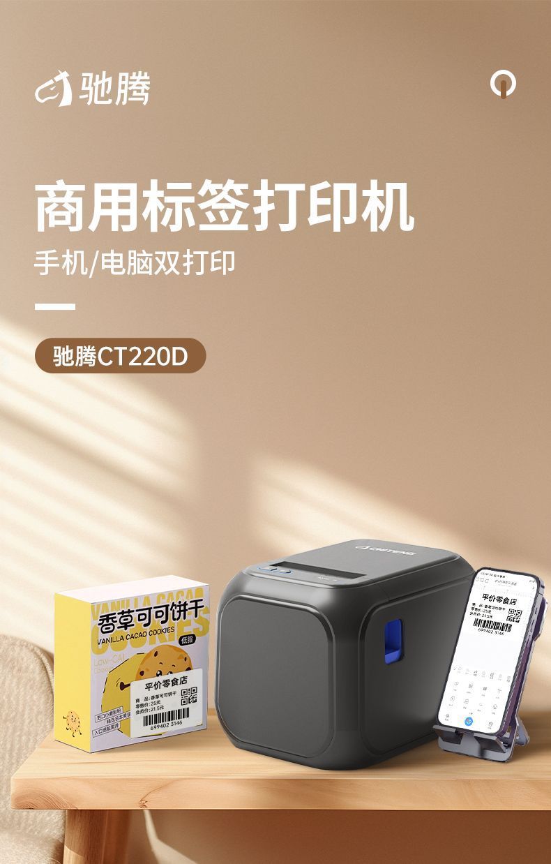 CT220D 국경 데스크탑 라벨 프린터 식품 우유 차 태그 열 스티커 바코드 슈퍼마켓 마킹 기계스토어 가기