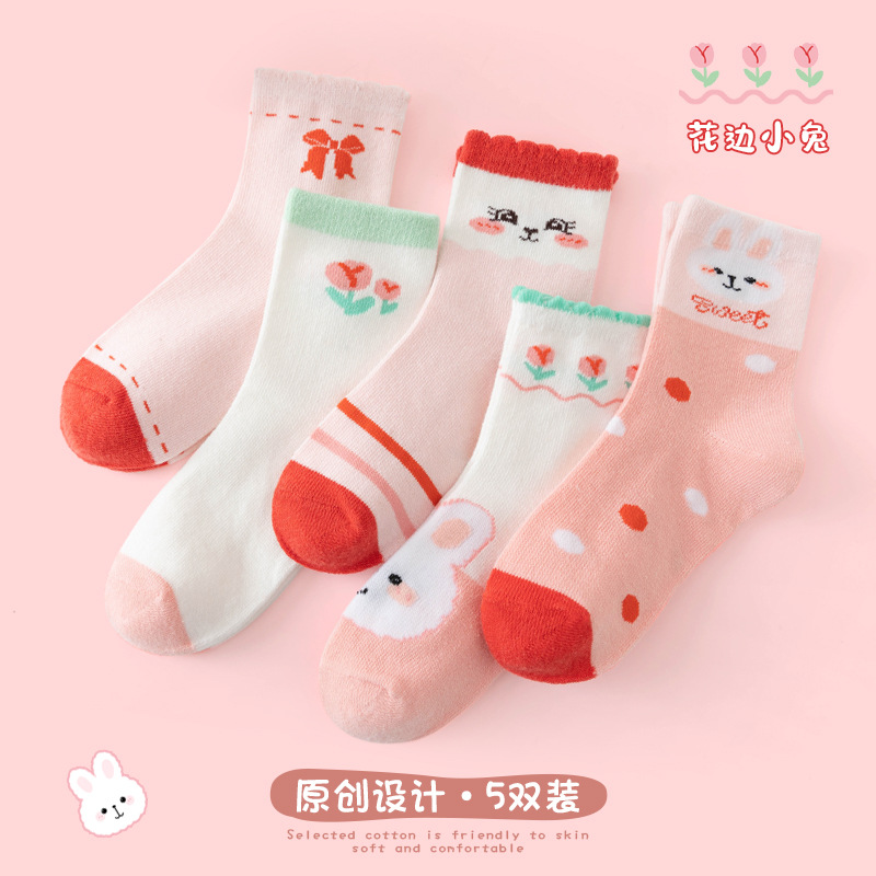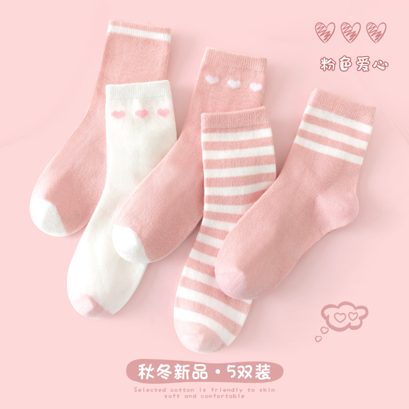 2025 가을 새로운 귀여운 만화 귀여운 버섯 면 양말 소녀 스트라이프 달콤하고 세련된 학생 중간 길이 양말