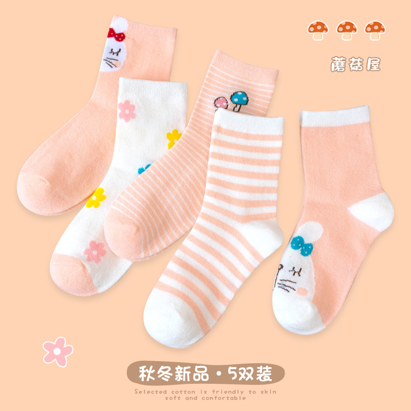 2025 가을 새로운 귀여운 만화 귀여운 버섯 면 양말 소녀 스트라이프 달콤하고 세련된 학생 중간 길이 양말스토어 가기