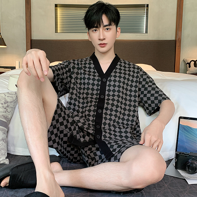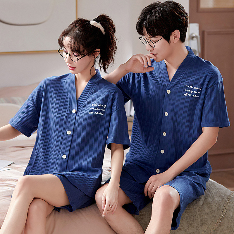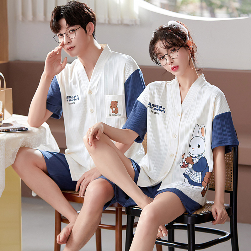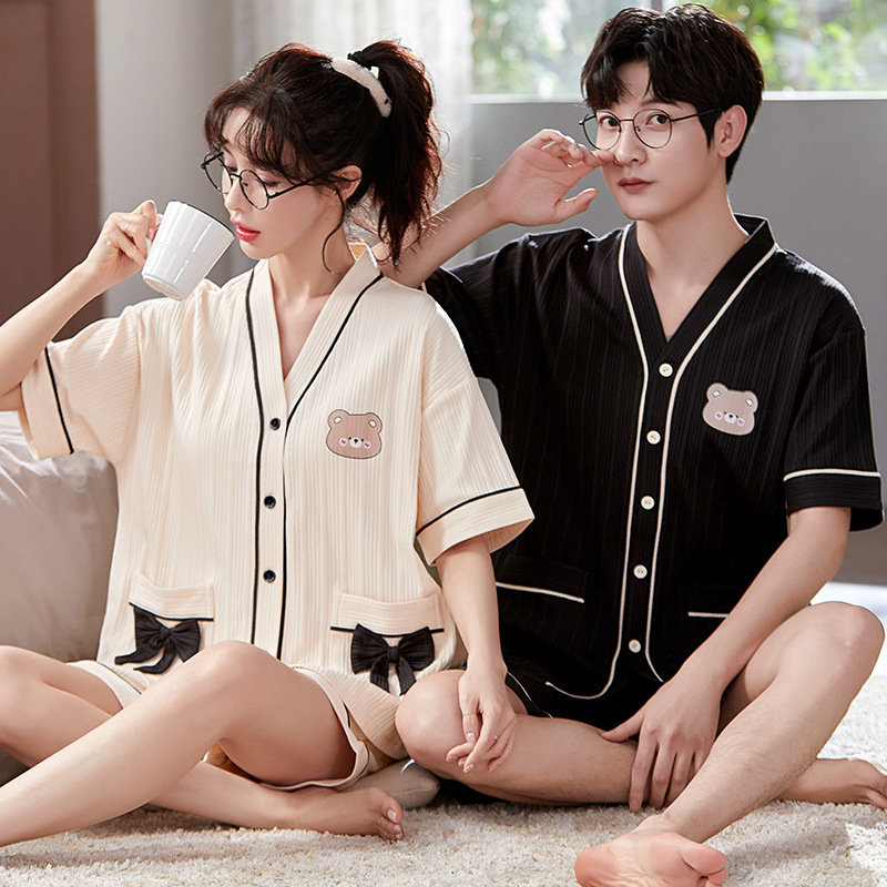 2025 새로운 반팔 커플 잠옷 여성 여름 코튼 홈 옷 귀여운 만화 카디건 남성 플러스 사이즈 세트스토어 가기