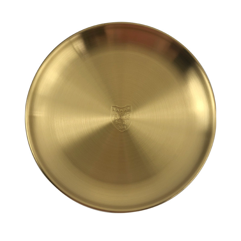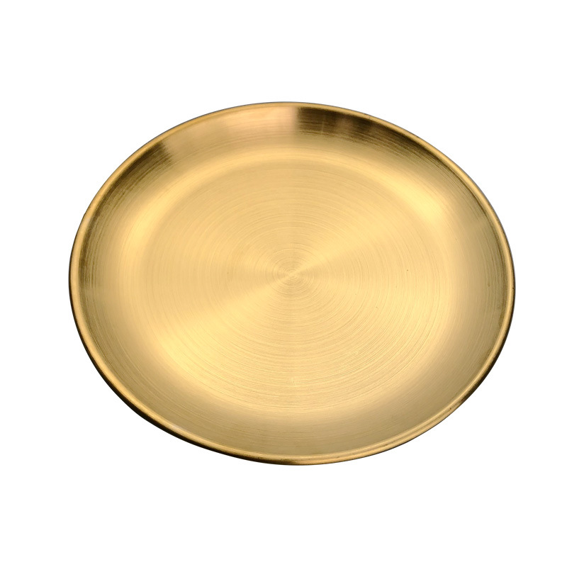 不锈钢圆盘金色咖啡厅托盘水果盘蛋糕盘骨碟菜碟浅盘西餐盘烤串盘