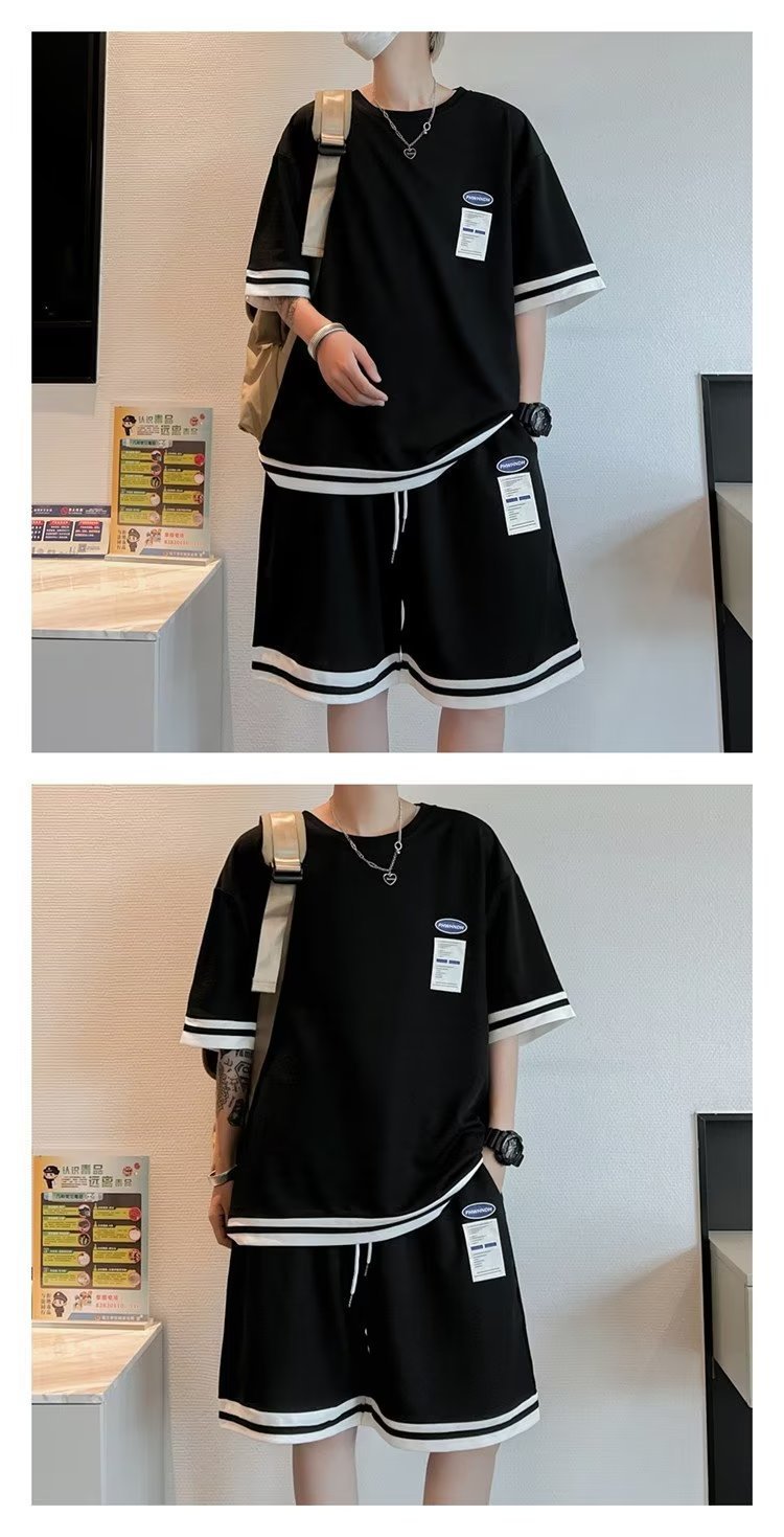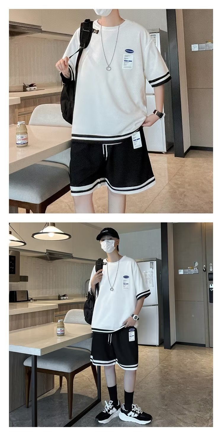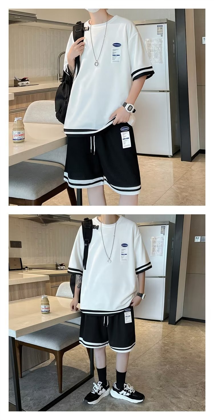 2022 새로운 반팔 티셔츠 남자의 여름 반바지 패션 스포츠 세트 패션 브랜드 느슨한 잘 생긴 캐주얼 투피스 세트