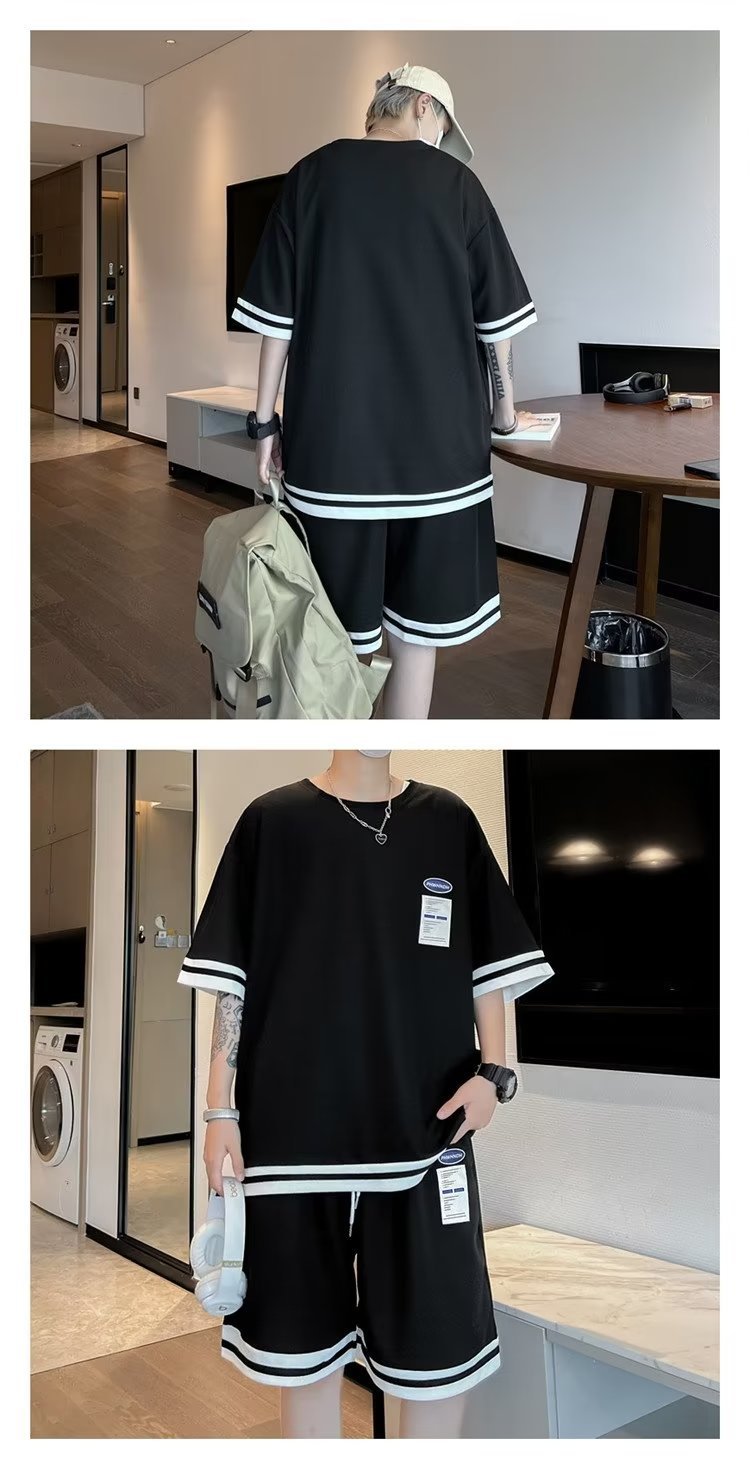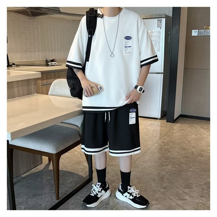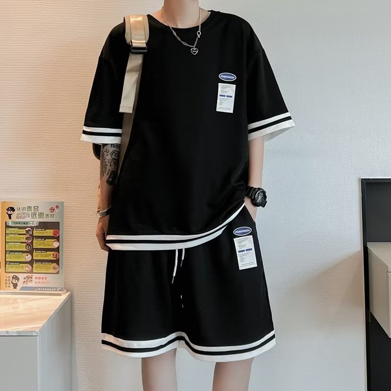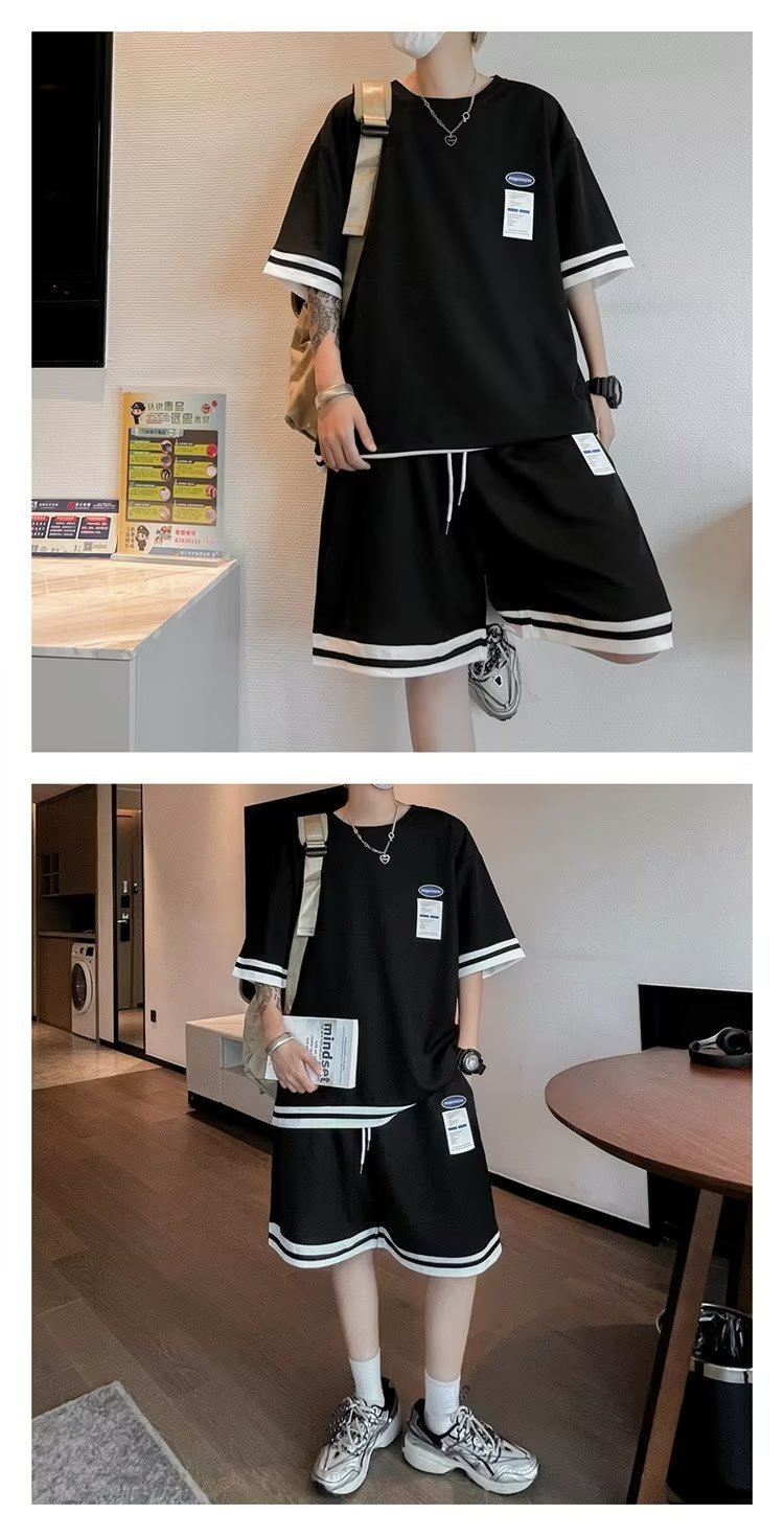 2022 새로운 반팔 티셔츠 남자의 여름 반바지 패션 스포츠 세트 패션 브랜드 느슨한 잘 생긴 캐주얼 투피스 세트